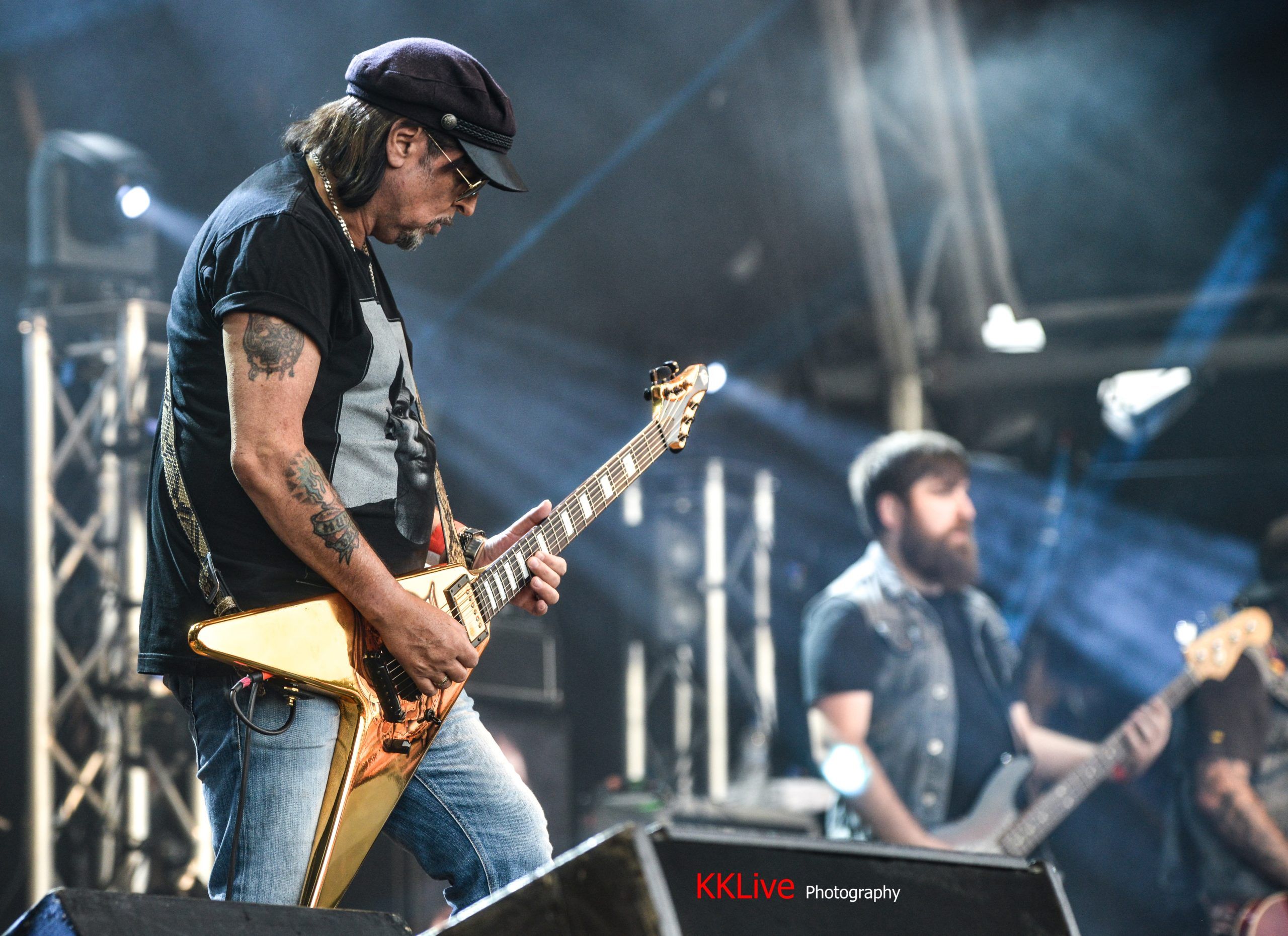 Formed in 1976 just down the road from me in Stourbridge. With Brian Tatler the original member from the Donnington 83 which Diamond Head graced the stage with the likes of Dio & Whitesnake, the many line-up changes through the years would have seen many bands disappear, but not these guys, they regenerate, morphing into the heads of the next generation of rock fans. Rasmus holds the stage, firing his voice like arrows into the crowd, each one collecting a new fan along the way creating many a “Happy Face”.
