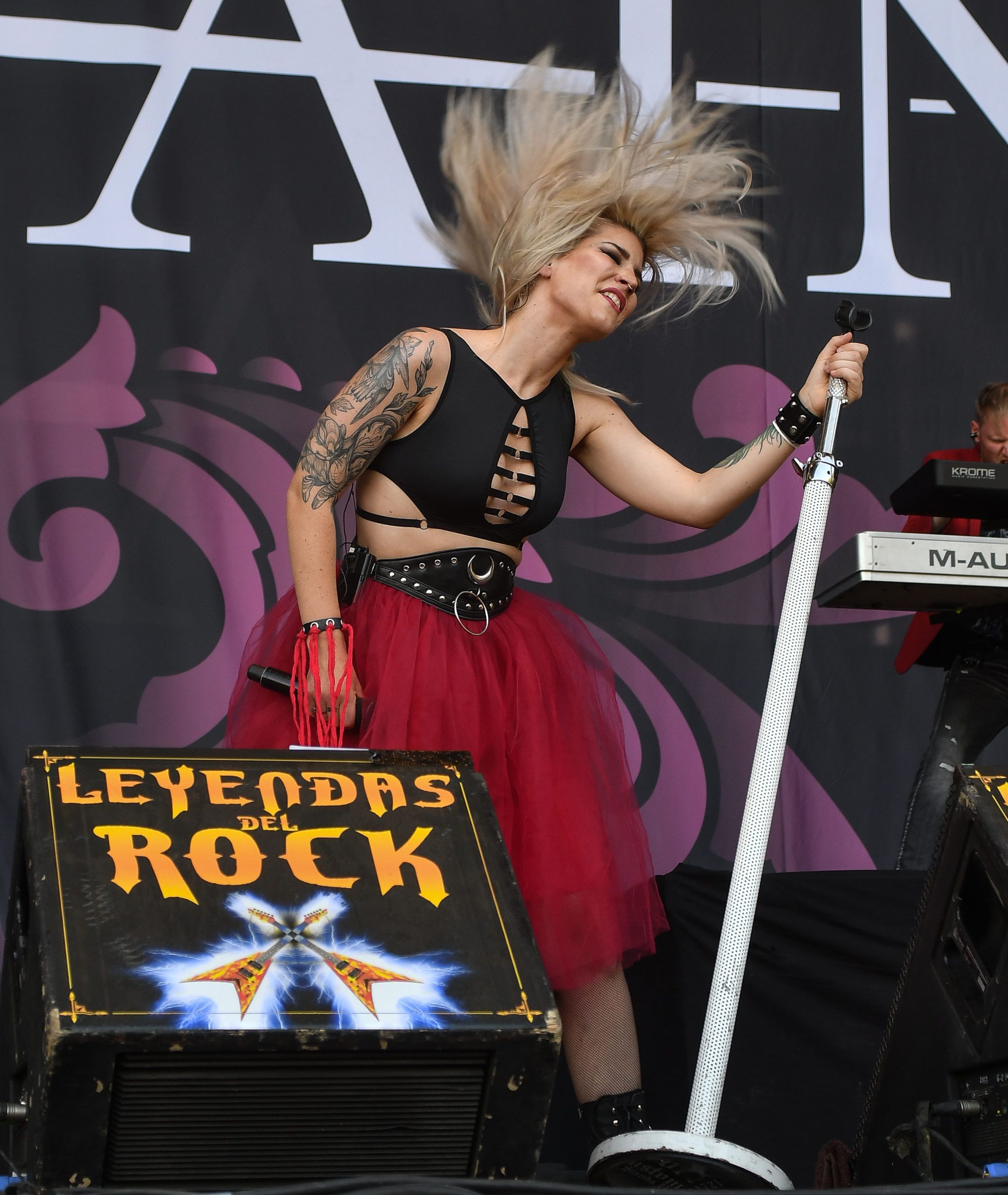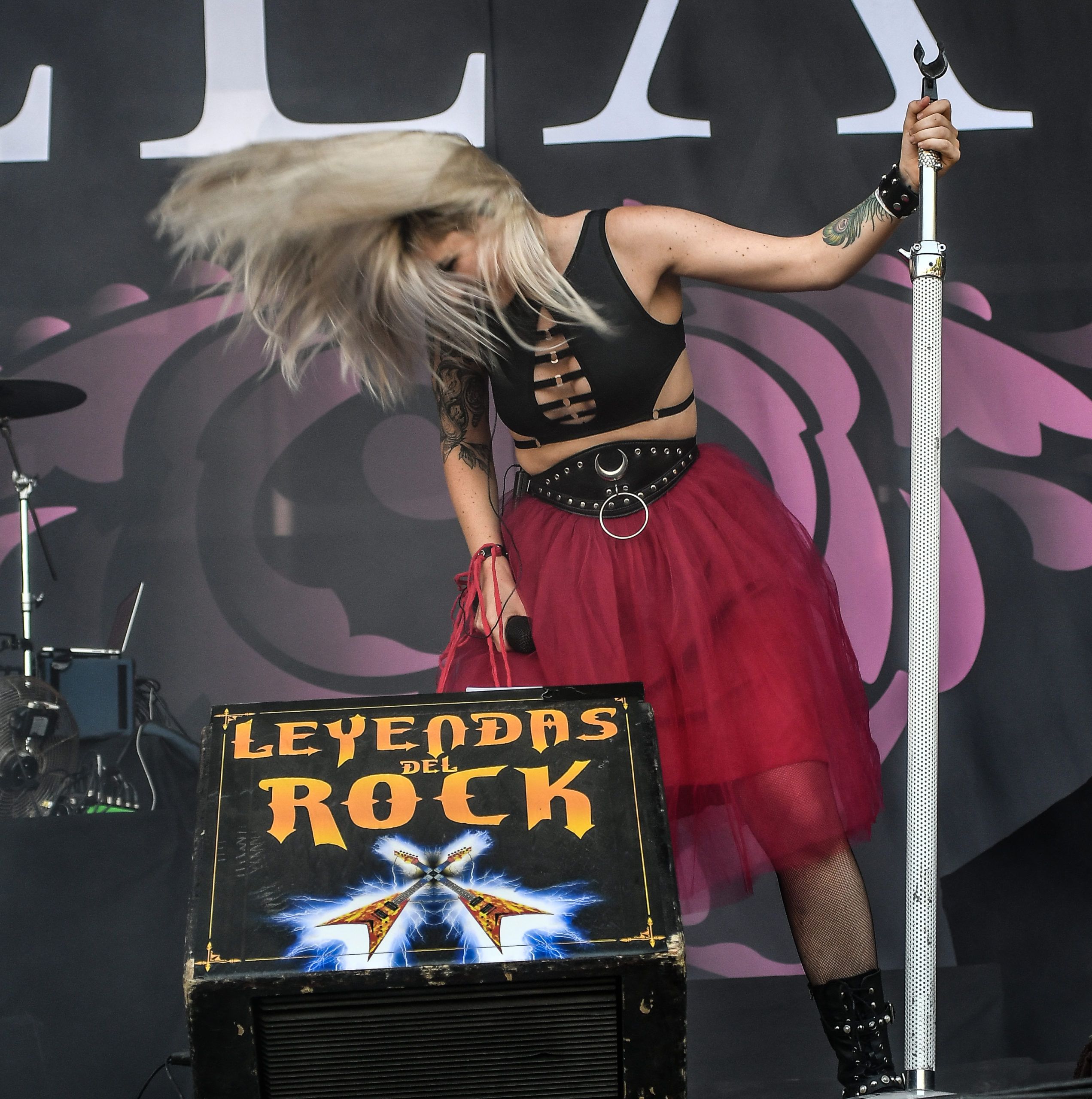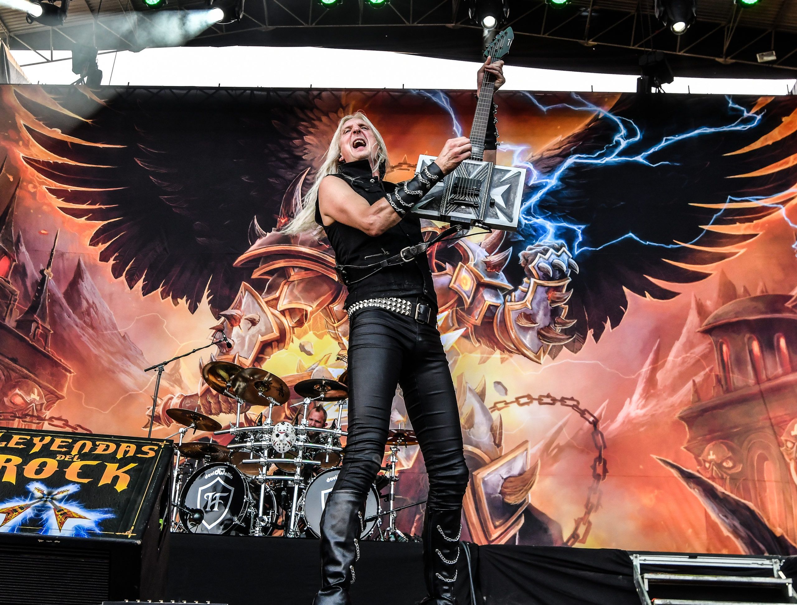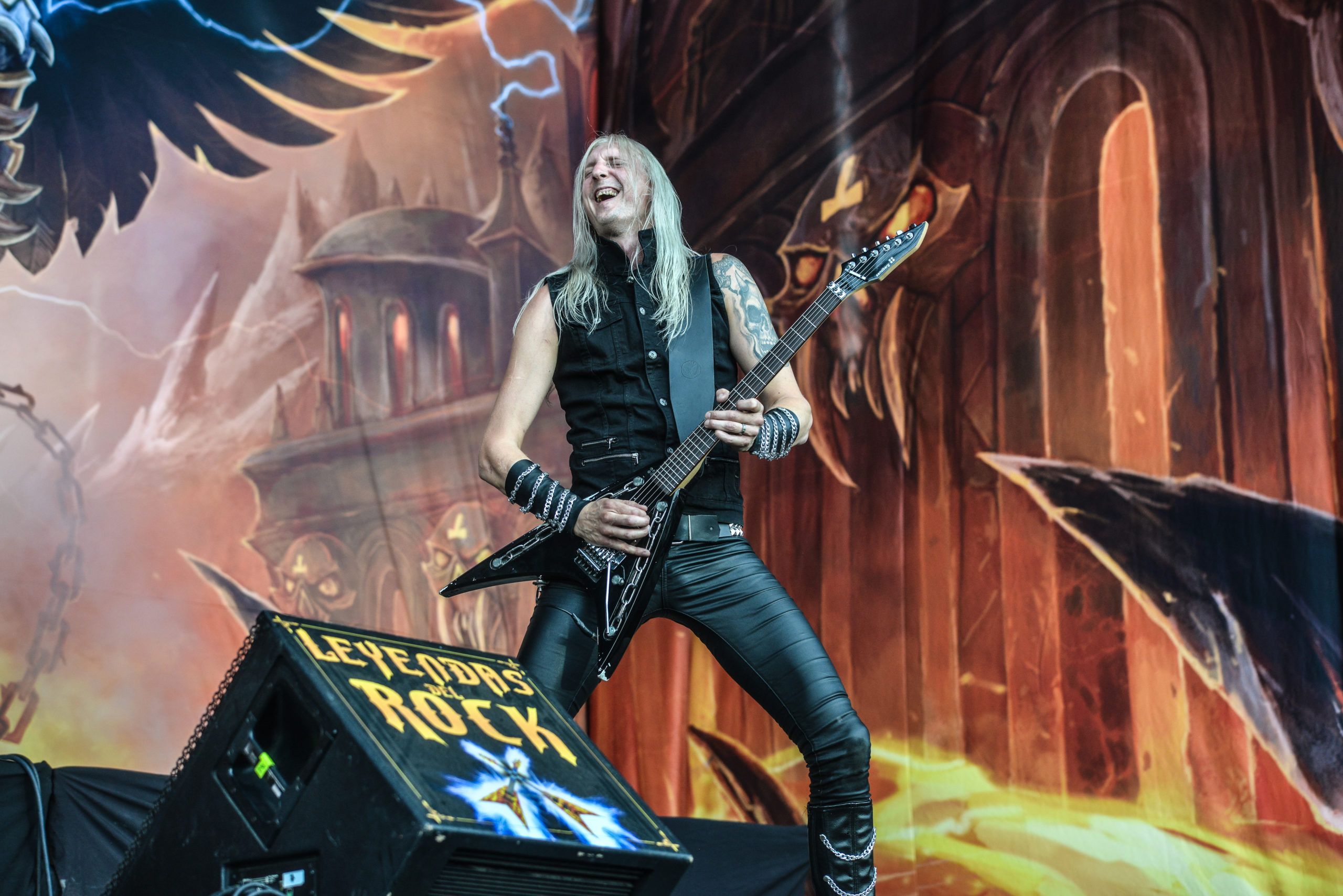 Alicante Airport (Spain)… trains, coaches and buses are busy carrying people wearing Def Leppard, Motorhead, Avatar, Avantasia, and Led Zeppelin tee-shirts. They’re not going on a beach holiday, but descending onto Villena.In August, there is a spectacular event that’s held for rock and metal fans from near and far – this year and for the past 6years, at the Municipal Sports Stadium of Villena (located in South Eastern Spain). The event? It is the “Leyendas del Rock” festival (The Legends of Rock).Set in the stadium grounds with a capacity of around 20,000 people and set amongst the most beautiful mountains and hills, this sports stadium, usually home to athletes, was transformed into a mega-music venue with 2 huge stages and a 3rd stage at the top of the hill, complete with a sound and lighting control unit. Fully transformed, the site was ready to welcome rock and metal bands from all over the world.I have attended this great festival for many years as a festival goer and taking photos, and I’m writing this review as an official reviewer for ROCKwell UnScene Magazine. I am honoured to have been asked by UK based music photographer Kal Ahmed to assist him. This is the first time he had heard of and attended this festival, recommended to him by one of his oldest school friends now living in Yecla (Spain), Tony Cooper.Leyendas del Rock, having had great bands in the past years such as Arch Enemy, Sabaton, Nightwish, Sepultura, Amon Amarth, Steve Harris’s British Lions, Uriah Heep, Anthrax, Steel Panther, Skindred, Nazareth, The Darkness, and Children of Bodom (and that’s just naming a few), this year hosted rock and metal groups such as Cradle of Filth,Avatar, Eluveitie, Avantasia, Hammerfall, Warcry, Apocalyptica, Rose Tattoo, Thin Lizzy, Lacuna Coil as well as homegrown Spanish favourites such as Megara, Medina Azahara, Baron Rojo and Los Barnes to name a few.