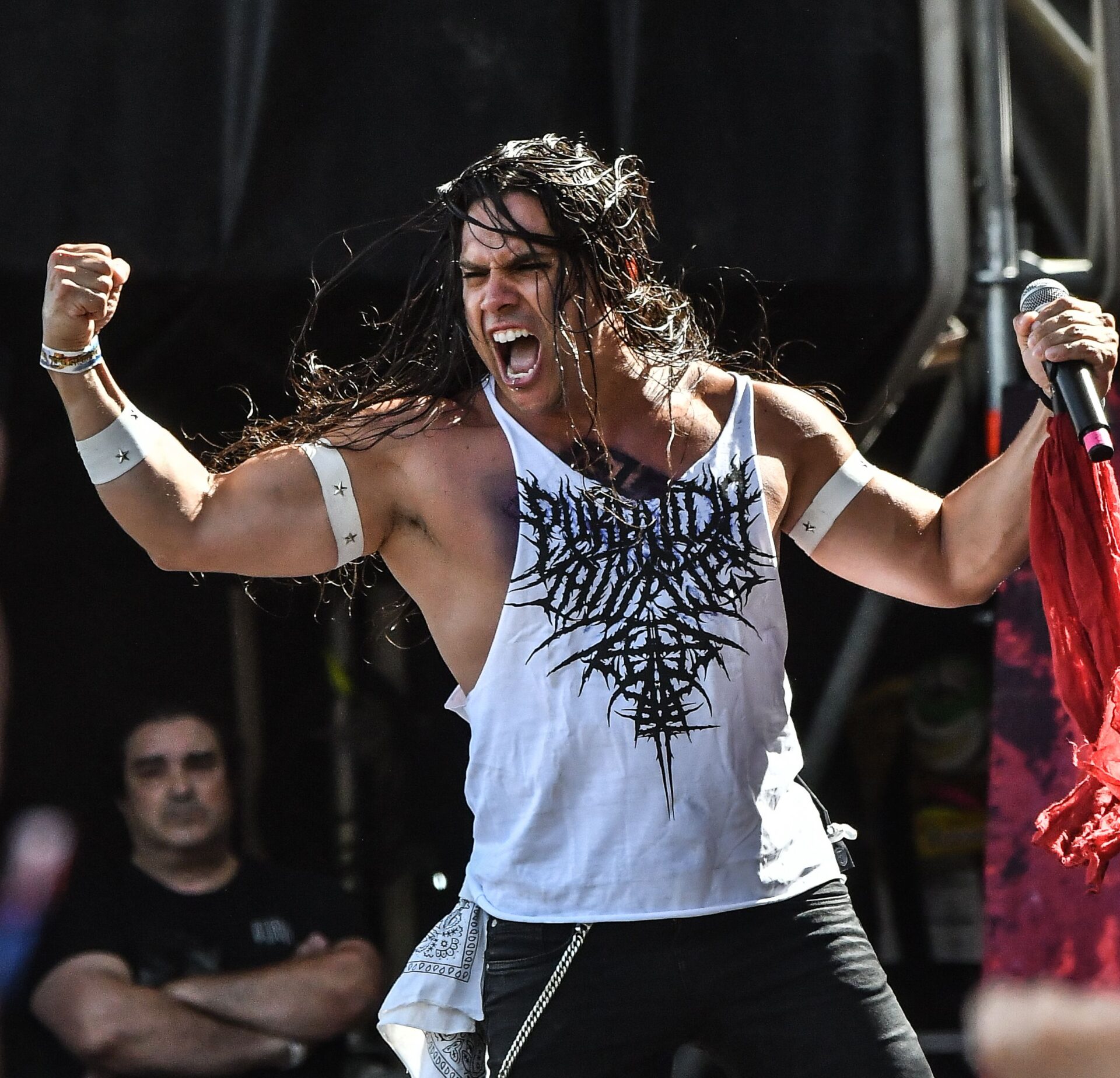 We got the notice that Dee Snider was unable to make the festival due to flight issues from New York, and he was replaced at the last moment by Beast in Black. Despite this, we started the day with the Spanish group Crisix, a group of ultra Trash-Metal mates that played with a scorching sun cast upon the festival. These artists are little recognized nationally but have already been part of the poster of the German Wacken Open Air Festival.