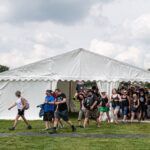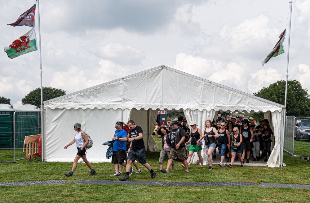 SATURDAY – An expected overnight storm arrived in the early hours and had taken down a few tents and gazebos on the campsite including Stage damage. The hours delay to the proceedings did nothing to dampen spirits.
