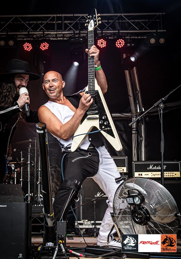 When Myke was introduced to the stage by Stonedead’s very own Mr. Maynell, we knew we were in for a treat, backed up by the vocal power of Dan Byrne (Rival Black), they delivered a fantastic set, power driven guitars to rapturous applause from the crowd. Myke was that good the RAF Spitfire crew decided to fly over for a closer look.