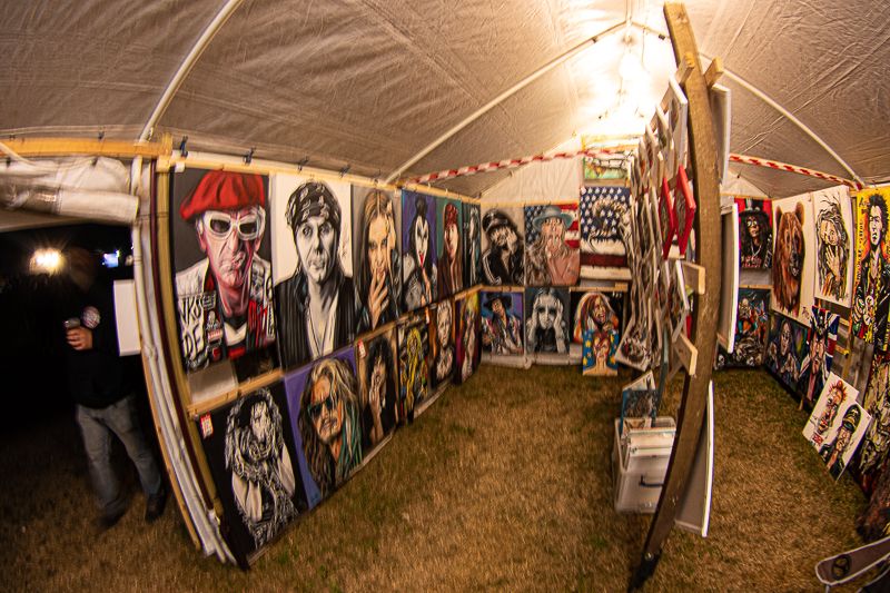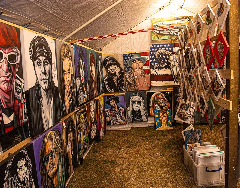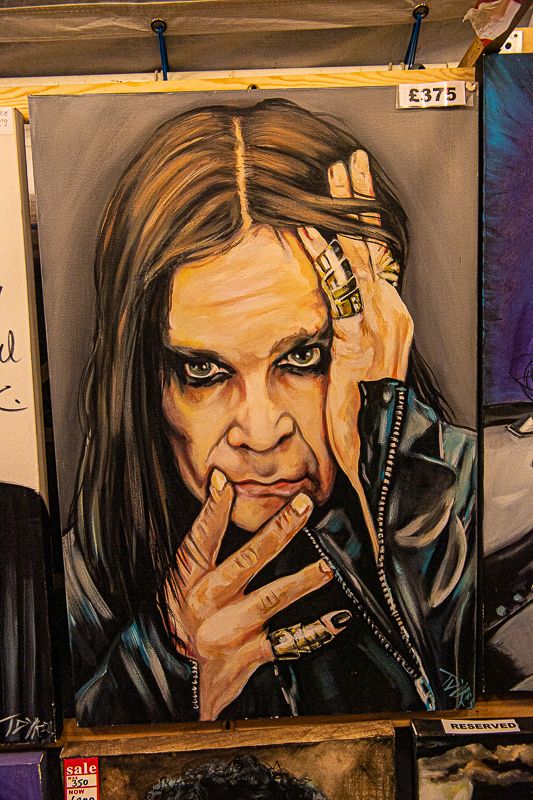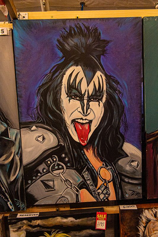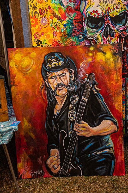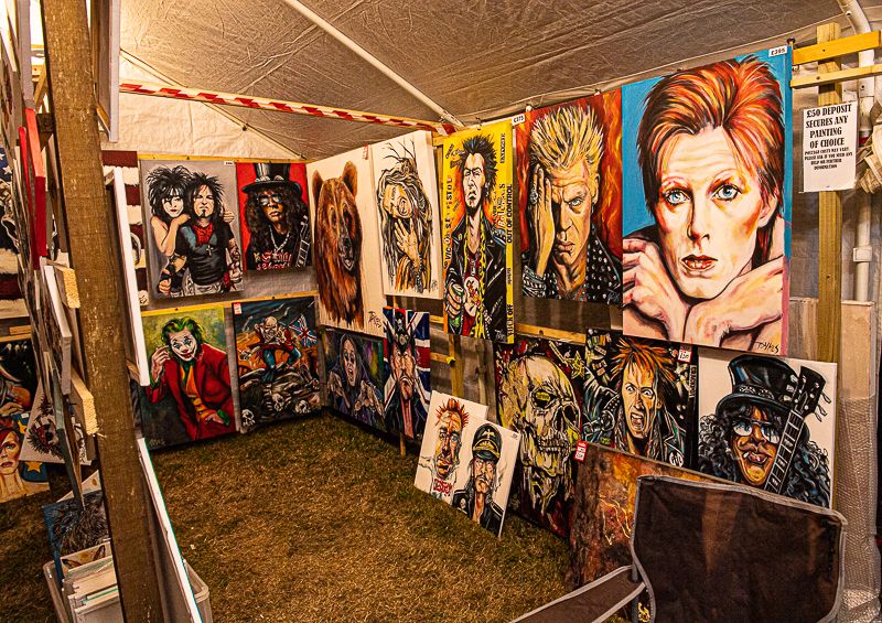 There were also a couple of independent vendors that caught my eye too- walking past a particular tent, we noticed some paintings- we had to be nosey …. WOW, the ‘enclosure’ was wall to wall full of paintings done by Tracey Dykes- paintings of Lemmy, Bowie, Marilyn Manson etc.. We just had to mention the amazing world of her paintings that we just walked in on…. She even paints leather jackets too… Check out her work…!!