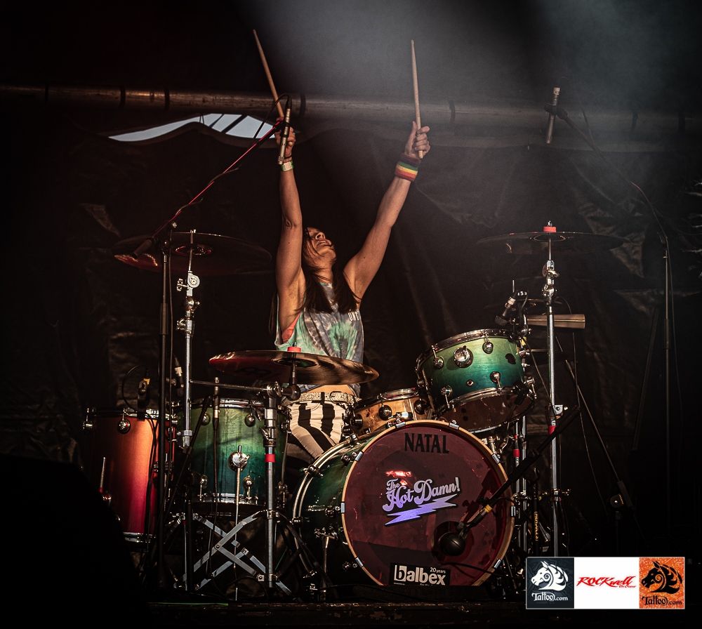 I’d not heard of Hot Damn before, but isn’t this why we come to festivals, to see bands we’ve never seen before. However, a couple of them looked familiar, and yes I have seen them before singer Gill Montgomery (Amorettes, at Slade rooms, Wolverhampton), and Laurie Buchannan (Aaron Buchanan at Amplified) teamed up with Drummer Josie O’Toole (Tequila mockingbird), & Lizzie Hayes (Sophie Lloyd band) to form The Hot Damn, they must have been off their rockers, (pardon the pun) to start a band during a pandemic, but oh no folks they were definitely on their rockers, having a year or so with no gigs, they got stuck in behind the scenes, rehearsing, writing new material and setting up our Friday treat at Stonedead. Their set as polished as you were ever going to find. Introduction to their new single dance around did just that.