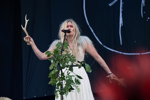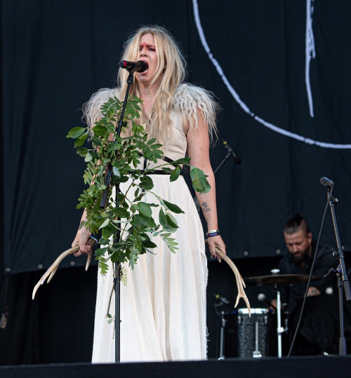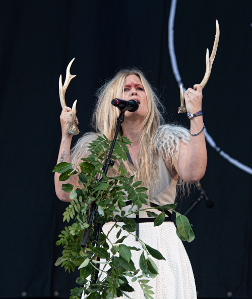 Heading back to the main stages, we were graced by MYRKUR– A Nordic folk group playing somewhat calming music using an array of instruments such as violins, kettle drums, shakers, guitars, ukulele topped with enchanting, beautiful song with wild primal screams…