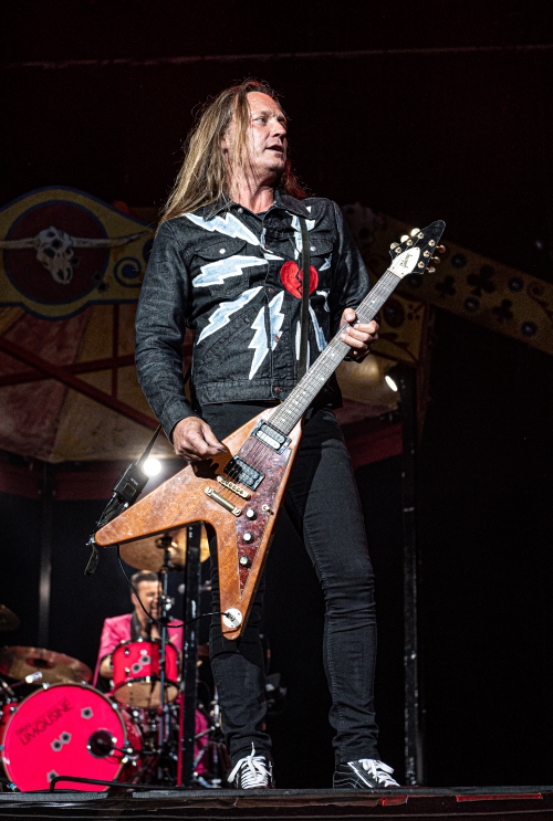 For the title of the true championing headliners of Friday night, though, their was really little to no competition; and that title goes to the local heroes D-A-D. Now, this may seem unexpected, as the response to the band from around half of the press tent was admittedly rather tame in comparison to others. Many of the attendants in question were local and had met the band on multiple previous occasions, and as such this was quite a regular occurrence for them. A stark contrast to myself and others fans from across the pond, as we were all understandably shitting ourselves with excitement at the prospect of seeing these hard rock legends perform. Having personally followed D-A-D since the release of ‘No Fuel Left for the Pilgrims’, being able to see them perform in a way they never could in the UK was a dream come true. As I previously mentioned, moments like these serve to remind you why it really is worth all of the hassle that comes with travelling to festivals and concerts. Irritating incidents aside, you will always get something new and exciting, as well as that little bit of ‘extra special’ that comes with seeing a band perform on their home turf and at their very best. This band was incredible from start to finish, truly stealing the show with their performance of ‘Sleeping My Day Away’. Was it cliche? Maybe. Did we love it anway? Yes, yes we did.