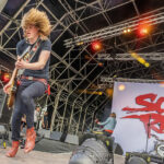 Local boys SCARLET REBELS take to the stage next. Dwarfed by the huge ‘REBELS’ backdrop are keen to get going, there’s a good quarter of an hour to catch up on with Kira’s delay. Kicking off with ‘I’m Alive’ the scorching guitars of Jones and Doyle rip in as we get under way. A kit issue has the crowd singing to the band as the offending item is replaced. ‘Save Me,’ ‘See Through the Blue’ and ‘These Days’ follow, the latter featuring a ‘Fuck the Tories’ quote which brings huge cheers from the crowd. The band are a tight unit and have a huge following non so evident as today as Doyle takes to the mic and finishes the set with ‘Heal’ a classic rock track full of emotion. The local boys have done good and laid the gauntlet down for the next band.