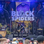 One of Planet Rocks Premiere DJ’s now takes to the stage, throwing drumsticks in to the crowd on the way to his kit. Wyatt Wendell’s has brought his ‘Cymbals of Appreciation’ up the Steelhouse Mountain in the form of his manic band BLACK SPIDERS. This crushing powerhouse mash up of all things gargantuan sounding deliver a 45minute set full of rip snorting abuse. From the powerhouse opening track, ‘Death Comes Creeping’ to the set closer ‘Kiss Tried To Kill Me’ the band deliver a trail of destruction. ‘Spider’ Spilby on vocals, stands front and centre, his gritty voice keeps the ship err ship shape as he lets loose on this high-octane set. The Guitar of Denim wearing ‘Owl’ Lister has the finesse of a police bartering ram as he delivers scorching licks in ‘Stick It to The Man,’ full of string bends and distorted madness to the cacophony of ‘Stabbed in The Back.’ Wendell’s, preening in-between barrages of shear chaos around the kit looks content as he tears into 60’s smasher ‘Good Times’ and locking in tight with ‘Fox’ Irwin create a psychotic barrage of rhythmical abuse that is ‘Teenage Knife Gang’ finishing the set with ‘Kiss Tried To Kill Me’ from 2011’s Sons Of The North, with its ‘Merican riffing sound bringing the set to an untimely end. Black Spiders maybe not be to everyone’s liking, but give them a go, they converted me, a cracking set.
