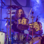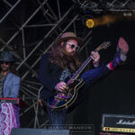 GREEN LUNG grace the stage in front of a very large backdrop embellished with pagan symbology, a hint of things to come, as I hear on the grape vine, they’re psychedelic in sound but with a punkier, Pagan Occult, edge, sounds fun. They, so far, have two albums to their name, 2019’s ‘Woodland Rites’ and 2021’s ‘Black Harvest.’ Kicking their slightly longer set off with ‘The Harrowing’. Its chanting start and drone build into a barrage of keys and guitars not unlike YES in their anthemic early days. This instrumental opener pathe’s the way for a continuation of gigantic keys joined with distorted guitar and heavy drums as ‘Old Gods’ gives us a dark moody Black Sabbath meets YES vibe. Vocals of Tom Templar are brooding, as he roams the runway singing to individuals in the crowd in an almost spell casting hypnotic way. The Pagan vibe to both ‘The Ritual Tree’ and ‘You Bear the Mark’ having a great church organ solo from John Wright. This London based Doom, Stoner band have found a unique sound even though at times feeling familiar, the bouncy tempo changes in ‘Call of The Coven’ are splendid, the band have mastered what they are doing. This genre of music might not be to everyone’s taste but judging by the crowds ‘shoegazing’ reaction they’re going down well. ‘Reapers Scythe’ continues with hard drums, soaring organ and a dirty distorted guitar. Single ‘Leaders of the Blind’ once again floods the crowd with dark guitars and a stunning laidback vocal. The organ break divides the song as it returns to a repetitive drum beat with a scorching guitar from bandana wearing Scott Black. The sudden stop brings us to ‘Graveyard Sun’ about the Highgate Vampire. The picked guitar, echoing Templars vocal, as the band join in with an anthemic wall of sound. Before dropping back into a simple drum beat and an almost spoken storytelling vocal. Punctuated with a cacophony of doom sounding drop tunings and a swirling organ that all parts ways for Blacks searing solo, theirs’s an element of Jethro Tull in the mix which gives it a somewhat pleasant edge the guitar and flute have changed places. It works, they’re a great band, as the crowd cheer the end of the song. Penultimate track ‘Woodland Rites’ follows with heavier driven intro, drop tunings and thrashing cymbals roll through this musical piece, chorus and harmoniser pedals a plenty give this song a bigger sound as it bounces along full-on intent into set closer ‘Let the Devil In’. funnily enough these two songs follow each other on the 1019, ‘Woodland Rites’ album. A lazier start to the excitement of the previous tune, well until the band kick in properly then we have the dropped tuned stoner vibe kicking ass. Templar is giving this one the beanz as he moves around the stage. The steady walking beat a great foundation for the guitar and organ so swirl and soar amongst. Another notable hymn for any Pagan chapel. I’m surprised to not see hooded monks waiting at the stage side to escort the band as they slowly leave the stage, or should that be alter?