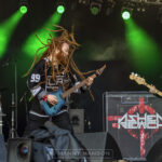 Parked up and errands delivered it’s into the venue with time to spare before we are hit with the percussive onslaught that is the great ASHEN REACH. Covering the band recently supporting Myke Gray on his farewell ‘MYKESTOCK’ tour prior to his final show on the mountain last night. This five-piece laid down some gargantuan beats in Wolverhampton so I’m looking forward to seeing the crowd’s reaction to this up-and-coming band. A huge jump from front man Kyle Stanley gets the show started with ‘Fighting for My Life.’ His animated delivery waking the bleary eyed in the crowd. Guitarist, Joe O’Sullivan has his ginger dreads moving hard as he delivers the doom ridden riffs to ‘Heir to the Throne.’ Jess Stanley hitting the skins hard on this drop tuned monster. Paddy Cummings is shoegazing as his hair covers his face whilst rocking out a meaty middle section of pure dirt, complete with Stanley’s vocal growls and the thundering bass from Mike McCarroll. The song switches to an almost symphonic sound to bring us to the finish and then we’re into ’Prey’ a mellower tune in its build up until an ear-piercing scream from both Stanley and Cumming’s break the monotony. The deliberate almost spoken lyric carries this song forward, sharp guitars weave around a thundering backline on this eerily delivered song. Fan favourite ‘Epiphany’ follows with it’s riffing intro interrupted with pitched squeals and heavy cymbal and tom work. This monastic banger has a medieval feel feel to it, heavy on the evil mind. Again, the hair is flying as this huge song is thrust at the nodding crowd. The set is finished with the title track to their album, ‘Homecoming’. Stanley fires it off with another leap into the air after the noodling guitar intro which lasts for nearly a minute before it up tempos and shortly after, we get a delicate side to Stanley’s vocals. The song is full of tempo changes and screaming guitar, with Stanley and O’Sullivan down the runway in the early afternoon sunshine, they bring this song to a raucous end, with guitars and fists held high they have opened the final day of Steelhouse 2022 and a great job they’ve made of it judging by the crowd’s reaction.