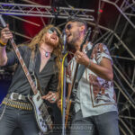 INGLORIOUS have the honour of closing out the opening night. The voice that is Nathan James, effervescent in every way, seems to have found peace in the latest line up of his band. Putting the past firmly in the closet and throwing the key. The band have delivered outstanding performances wherever they have played of late. Sliding onto the set, arms outstretched, we kick off with ‘She Won’t Let You Go’ the 2020 single full of early 80’s big hair soaring guitars, harmonising as they did. ‘Messiah’ sees a more melodic side to the band as James shows us how clean his pipes really are with a stunning display of control. Guitarist Dela Cruz, for the most part is playing in the darker side shows us why he has helped cement his place in the band as he rips a scorching lick or two during ‘Unaware.’ With a set with hints of Whitesnake, Foreigner and Dio flowing through it veins it’s no surprise ‘Medusa’ with its Marsden style slide guitar has the crowd bouncing along into ‘Barracuda’ with its thundering intro has Beaver working hard on the drums as this mighty number cruises along at thundering gallop. This stunningly triumphant set is concluded with a guitar fest provided by Stevens and Dela Cruise as they rip into ‘Until I Die,’ an Encore to many a previous set. A grinding way to rock the end of the night. James vocal is up there with the best as he swoops and soars around the crushing melody from the self-titled album. The screaming solo a highlight to the final song of a stunning opening day for this year’s festival.