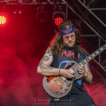 Motörhead, sadly all have departed. Standing tall Ward delivers this one and for a second, with eyes closed you could imagine it was Lemmy singing, eyes open and we have a missing Murder One, but the song, carries on full of Filthy Phil kick ass drumbeats scorching Fast Eddy Clarke guitar and Armstrong’s thundering bass. A great number and one that has the crowd bouncing in the afternoon sun. ‘Devils Whip’ from 2012’s ‘A Eulogy for The Damned’ continues the fierce bludgeoning. Sounding like something Lemmy may have penned. Guitarist Joe Hoare is riffing for his life, the sweat pouring from him as he throws down some evil, distorted licks as Ward laments gently to the crowd, not! ‘The Fog’ and set closer, ‘Red Tide Rising’ continue to piledrive the mountain top. Both these tracks are from their 2012 album ‘The Eulogy for The Damned’. Stoner layered riffs circle the crowd as Ward growls into the microphone set about eight feet above the crowd’s heads. His Lemmy style delivery continues through The Fog and into Red Tide Rising. Full of feed-back and distorted guitar and bass, Ward asks for the crowd to go fuckin’ crazy with this one, they’re ahead of him as the heads are nodding and fists and horns are flying, skyward. The band conclude with thanks to everyone for listening to them. What a set, explosive from the get-go, it was relentless to the very end, stupendous, I think I’ve just found another great live band to add to my already jam-packed collection.