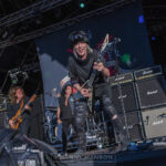 How do you follow that Scandinavian magic, well it’s easy you pour on more Scandinavian’s in the form of Sweden’s H.E.A.T. With Kenny Leckremo now back at the helm. Due to Eric Grönwall leaving and joining Skid Row, In-fact at Kenny’s last show he said he would be back with his brothers one day, and what an impact he’s making. Swedish Melodic rock has just taken it up a notch, with guitarist Dalone re-joining the band prior to the recording of ‘Into The Great Unknown’ album release, the band are now firing on all cylinders, and firing hard! Opening they’re set with ‘One By One’ from 2020’s H.E.A.T. II, the voice is sublime as he runs up and down the runway playing to the crowd, his smile is palpable as the huge 80’s guitar sound echoes around the dancing crowd, Crash is smiling as he hammers a walking beat, the first song and already the crowd has swollen as the melodic 80’s are revisited. The 80’s sound continues with ‘Running Free,’ ‘Dangerous Ground’ and ‘Hollywood,’ the latter is being 4, off the latest album Force Majeure, such a great tune I bought the album when I got back home. The boys have certainly brought the party vibe to the mountain, carrying on with ‘Straight For Your Heart’ from 2008’s self-titled debut album, a title often mistakenly called ‘straight from the heart.’ ’Crash’ gets a work out on this one with it’s battering ram start before it settles down to a rhythmical onslaught. Kenny’s voice is soaring on this one as he again dances around in the wet evening, the stunning guitar with it’s impromptu wah wah is straight from the history books. ‘Beg Beg Beg’ from 2012’s Freedom Rock has the guitars and drums rocking away, this single from 2012 is a great party tune with the distinct Eurovision vibe. The set closed with ‘1000 miles’ the Bonus track on the original H.E.A.T. album alongside ‘Stay’ and ‘Nationwide’ a rousing climax from the latest offering Force Majeure.