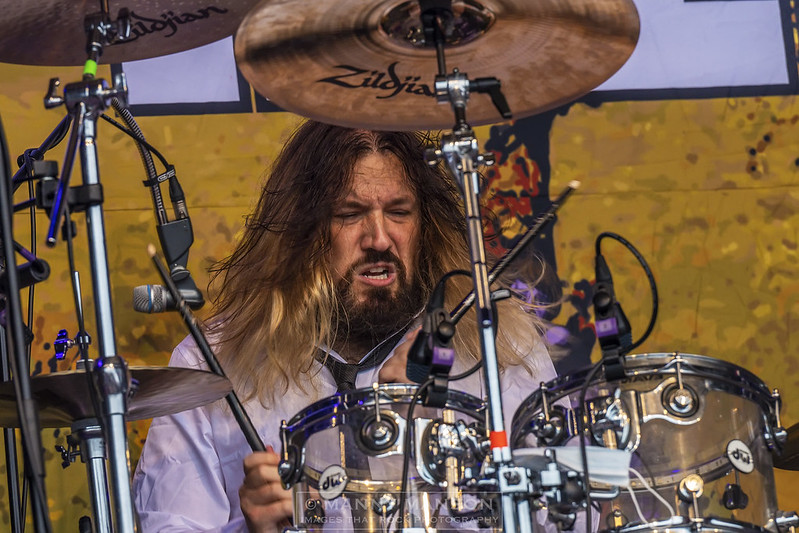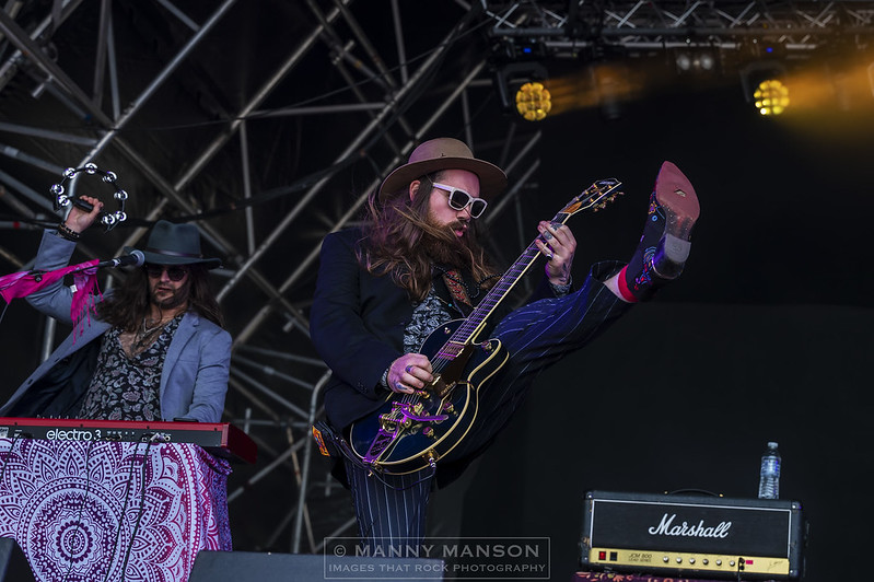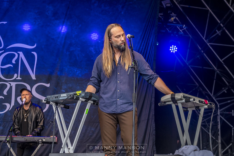 Finnish Prog-Miester’s the VON HERTZEN BROTHERS hit the stage amidst the Steelhouse drizzle. I’ve witnessed these Scandinavian band of brothers recently as they toured their latest album, Red Alert in a Blue Forest. They’re layering of aural textures on the album is sublime and a worthy addition to any ‘Prog’ fans collection. With a cheery Mikko controlling the show the band are into ‘Day of Reckoning’ the first track from the new long player. I can’t help but feel there is an early Wishbone Ash vibe in they’re trying to get out. The bouncing synthesised sound chimes out as the harmonised voices of the brothers send shivers across the mountain top, it slowly builds until the inevitable release as Kie dances around the stage, releasing a thunderous wall of sound which resonates across the arena. Pausing briefly saying it’s good to be back, smiling Mikko refers to their previous appearance at Steelhouse, Kie destroys the moment with a scorching finger exercise that is the start to ‘Frozen Butterflies,’ from the ‘War Is Over’ album, with it’s drum beat echoing around the stage, the softly sung lyric belies the fury that is happening on stage. The folk inspired ‘All of A Sudden You’re Gone’ is up next, released as a single in January this year, it’s ethereal folk tones tipped with the synthesised keys from brother Jonne giving it it’s hauntingly dramatic orchestral sound. ‘Long Lost Sailor’ which originally started out as a song about cowboys and the wild west goes down well as the water falls gently from the sky. Mikko ventures down the runway to deliver a precise solo, smiling as he does so his hair sodden by the Welsh mizzle as he delivers a stunning lick, Kie is dancing around, the man is never still as they finish the set with the slightly pacier ‘Peace Patrol.’ A great sounding song with hints at the musical east running through it. Kie has the honour of letting rip with a scintillating guitar solo that wouldn’t be out of place on any early YES or Pink Floyd album. I have to admit I am a huge fan of the Finnish brothers so it’s no surprise that they are one of my standout bands of the weekend, get and see them, they’re magical!