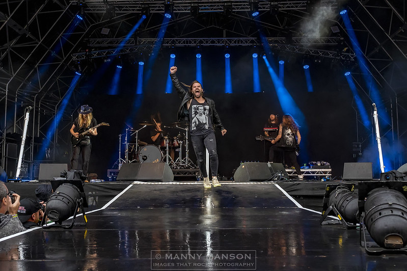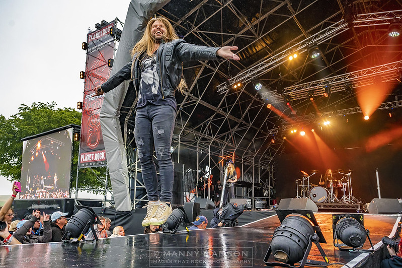 How do you follow that Scandinavian magic, well it’s easy you pour on more Scandinavian’s in the form of Sweden’s H.E.A.T. With Kenny Leckremo now back at the helm. Due to Eric Grönwall leaving and joining Skid Row, In-fact at Kenny’s last show he said he would be back with his brothers one day, and what an impact he’s making. Swedish Melodic rock has just taken it up a notch, with guitarist Dalone re-joining the band prior to the recording of ‘Into The Great Unknown’ album release, the band are now firing on all cylinders, and firing hard! Opening they’re set with ‘One By One’ from 2020’s H.E.A.T. II, the voice is sublime as he runs up and down the runway playing to the crowd, his smile is palpable as the huge 80’s guitar sound echoes around the dancing crowd, Crash is smiling as he hammers a walking beat, the first song and already the crowd has swollen as the melodic 80’s are revisited. The 80’s sound continues with ‘Running Free,’ ‘Dangerous Ground’ and ‘Hollywood,’ the latter is being 4, off the latest album Force Majeure, such a great tune I bought the album when I got back home. The boys have certainly brought the party vibe to the mountain, carrying on with ‘Straight For Your Heart’ from 2008’s self-titled debut album, a title often mistakenly called ‘straight from the heart.’ ’Crash’ gets a work out on this one with it’s battering ram start before it settles down to a rhythmical onslaught. Kenny’s voice is soaring on this one as he again dances around in the wet evening, the stunning guitar with it’s impromptu wah wah is straight from the history books. ‘Beg Beg Beg’ from 2012’s Freedom Rock has the guitars and drums rocking away, this single from 2012 is a great party tune with the distinct Eurovision vibe. The set closed with ‘1000 miles’ the Bonus track on the original H.E.A.T. album alongside ‘Stay’ and ‘Nationwide’ a rousing climax from the latest offering Force Majeure.