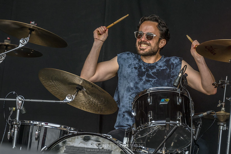 Motörhead, sadly all have departed. Standing tall Ward delivers this one and for a second, with eyes closed you could imagine it was Lemmy singing, eyes open and we have a missing Murder One, but the song, carries on full of Filthy Phil kick ass drumbeats scorching Fast Eddy Clarke guitar and Armstrong’s thundering bass. A great number and one that has the crowd bouncing in the afternoon sun. ‘Devils Whip’ from 2012’s ‘A Eulogy for The Damned’ continues the fierce bludgeoning. Sounding like something Lemmy may have penned. Guitarist Joe Hoare is riffing for his life, the sweat pouring from him as he throws down some evil, distorted licks as Ward laments gently to the crowd, not! ‘The Fog’ and set closer, ‘Red Tide Rising’ continue to piledrive the mountain top. Both these tracks are from their 2012 album ‘The Eulogy for The Damned’. Stoner layered riffs circle the crowd as Ward growls into the microphone set about eight feet above the crowd’s heads. His Lemmy style delivery continues through The Fog and into Red Tide Rising. Full of feed-back and distorted guitar and bass, Ward asks for the crowd to go fuckin’ crazy with this one, they’re ahead of him as the heads are nodding and fists and horns are flying, skyward. The band conclude with thanks to everyone for listening to them. What a set, explosive from the get-go, it was relentless to the very end, stupendous, I think I’ve just found another great live band to add to my already jam-packed collection.
