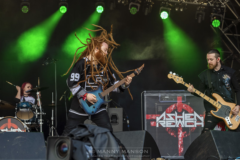 Parked up and errands delivered it’s into the venue with time to spare before we are hit with the percussive onslaught that is the great ASHEN REACH. Covering the band recently supporting Myke Gray on his farewell ‘MYKESTOCK’ tour prior to his final show on the mountain last night. This five-piece laid down some gargantuan beats in Wolverhampton so I’m looking forward to seeing the crowd’s reaction to this up-and-coming band. A huge jump from front man Kyle Stanley gets the show started with ‘Fighting for My Life.’ His animated delivery waking the bleary eyed in the crowd. Guitarist, Joe O’Sullivan has his ginger dreads moving hard as he delivers the doom ridden riffs to ‘Heir to the Throne.’ Jess Stanley hitting the skins hard on this drop tuned monster. Paddy Cummings is shoegazing as his hair covers his face whilst rocking out a meaty middle section of pure dirt, complete with Stanley’s vocal growls and the thundering bass from Mike McCarroll. The song switches to an almost symphonic sound to bring us to the finish and then we’re into ’Prey’ a mellower tune in its build up until an ear-piercing scream from both Stanley and Cumming’s break the monotony. The deliberate almost spoken lyric carries this song forward, sharp guitars weave around a thundering backline on this eerily delivered song. Fan favourite ‘Epiphany’ follows with it’s riffing intro interrupted with pitched squeals and heavy cymbal and tom work. This monastic banger has a medieval feel feel to it, heavy on the evil mind. Again, the hair is flying as this huge song is thrust at the nodding crowd. The set is finished with the title track to their album, ‘Homecoming’. Stanley fires it off with another leap into the air after the noodling guitar intro which lasts for nearly a minute before it up tempos and shortly after, we get a delicate side to Stanley’s vocals. The song is full of tempo changes and screaming guitar, with Stanley and O’Sullivan down the runway in the early afternoon sunshine, they bring this song to a raucous end, with guitars and fists held high they have opened the final day of Steelhouse 2022 and a great job they’ve made of it judging by the crowd’s reaction.