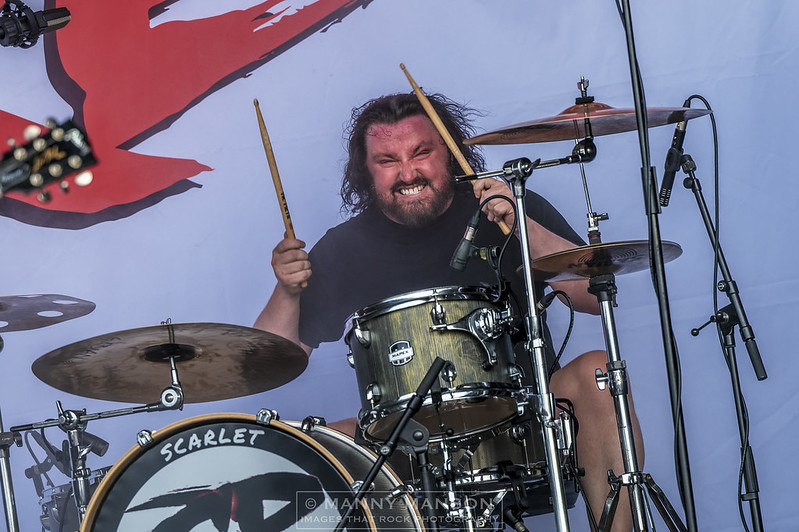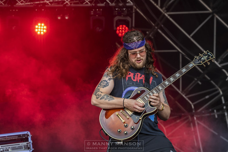 As the stage is cleared folk hurriedly go and get a much need drink to get back in time for the penultimate band of the day. A paramotor flies over head, someone shouts out its Bernie Marsden trying to get in on the act, Bernie, the ever consummate professional and friend of Max and Mikey, and has played Steelhouse several times in the past, someone suggests that he’s not happy being left off the list of bands so is going to annoy everyone by ‘buzzing’ around.. oh, how we laughed!