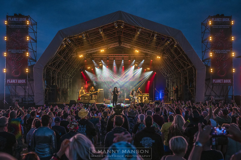INGLORIOUS have the honour of closing out the opening night. The voice that is Nathan James, effervescent in every way, seems to have found peace in the latest line up of his band. Putting the past firmly in the closet and throwing the key. The band have delivered outstanding performances wherever they have played of late. Sliding onto the set, arms outstretched, we kick off with ‘She Won’t Let You Go’ the 2020 single full of early 80’s big hair soaring guitars, harmonising as they did. ‘Messiah’ sees a more melodic side to the band as James shows us how clean his pipes really are with a stunning display of control. Guitarist Dela Cruz, for the most part is playing in the darker side shows us why he has helped cement his place in the band as he rips a scorching lick or two during ‘Unaware.’ With a set with hints of Whitesnake, Foreigner and Dio flowing through it veins it’s no surprise ‘Medusa’ with its Marsden style slide guitar has the crowd bouncing along into ‘Barracuda’ with its thundering intro has Beaver working hard on the drums as this mighty number cruises along at thundering gallop. This stunningly triumphant set is concluded with a guitar fest provided by Stevens and Dela Cruise as they rip into ‘Until I Die,’ an Encore to many a previous set. A grinding way to rock the end of the night. James vocal is up there with the best as he swoops and soars around the crushing melody from the self-titled album. The screaming solo a highlight to the final song of a stunning opening day for this year’s festival.