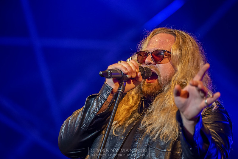 Wow two great Scandi rock bands, it doesn’t get any better, or does it, well when you have the GRAHAM BONNET BAND up next you know the party is going to continue. Belying his 74 years, the ever-youthful Bonnet hits the stage. Despite the passing years the stunning voice has remained true to himself with jacket, tie and sunglasses. He casually gets down to business with giving us the favourites from ‘Down To Earth,’ that Rainbow classic, along with a smattering of hits from his extensive back catalogue, including time with Schenker. Kicking off with ‘Since You’ve Been Gone’ and ‘All Night Long’ we’re immediately transported back to 1979, ‘Since You’ve Been Gone’ the single being released in August ’79 it reached No6 in the mainstream UK singles chart, ‘All Night Long’ went one better and reached No 5. The album went on to peak at No6. These two songs grabbed hold of the more aged in the crowd as they burst into song. Fists and horns flying as a sometimes, strained looking Bonnet belted out these classics. He squeezes in ‘Imposter’ from his ‘Day Out In Nowhere‘ album after telling us he’s had his knees worked on, he’s previously eyed up the wet runway reworded a line in all night long to emphasise his trepidation of venturing out onto it. His solo hit, ‘Night Games’ gets a solid reception as we all take the time to sing along with this great man.