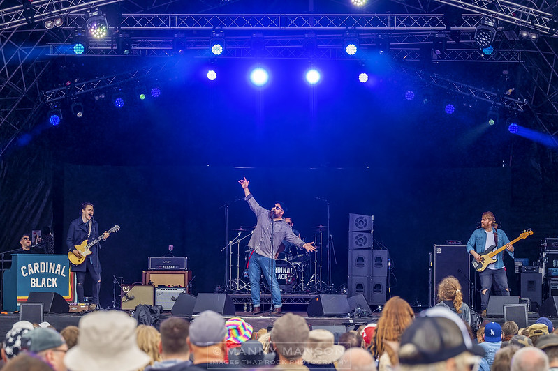 CARDINAL BLACK, locals it would seem as big Tom Hollister appears from the mist and shouts out “Alright! Let’s Have It” and then giggles to himself. I’ve seen this band several times before and have always been left agog at why they’re not massive headliners. A little bit different to your usual Steelhouse band as the silky-smooth voice of Tom Hollister caresses as they open up with ‘Rise Up.’ We have a stunning guitar sound coming from probably one of the most talented players on the circuit. Young Chris Buck, former best guitarist in the world, dressed in a black Macintosh, strokes his instrument of choice, namely a gold double cut away. His tone matches Tom’s ridiculous silky voice. Luther Vandross is channeling and you can visible see the girl’s knees go weak. As with a lot of bands you can hear ‘nods’ to a variety of sounds where they’ve drawn inspiration from, these and evident as the set plays on, ‘Tell Me How It Feels,’ ‘Jump In’ perfect vehicles for his warm honey filled voice to further seduce and hold the attention. A Guinness appears from the crowd, despite shouts of ‘Chug, Chug, Chug’ Tom casually takes a drink then replies you wouldn’t want me to share it with you all. He apologies for not being as Rock’n’Roll as other bands on the billing, but listening to the tight sound coming from the 5piece it didn’t matter, the guitar was sublime, keys on point and the meaty backline was strong and hardy. Drop the voice over the top and you have one of the stand out bands of the weekend as the band finish with a masterclass in slow blues, finishing with the delicious ‘Tied Up In Blue,’ with its improvised ‘jazz’ note solo provided by Mr. Buck, down the runway. The roar of approval from the crowd only backs what I thought, as a smiling Tom Hollister leaves the stage, a job well done.