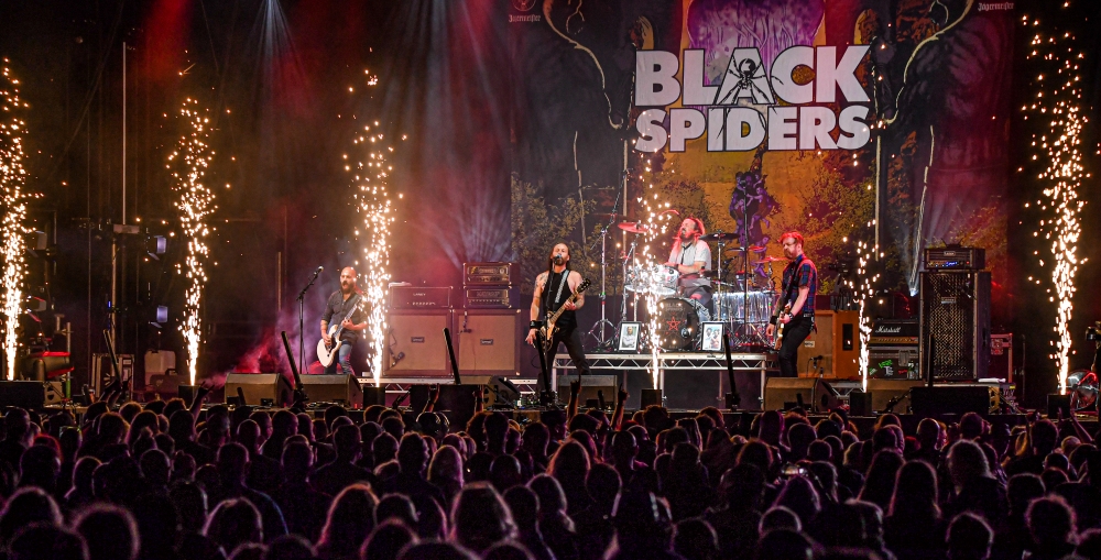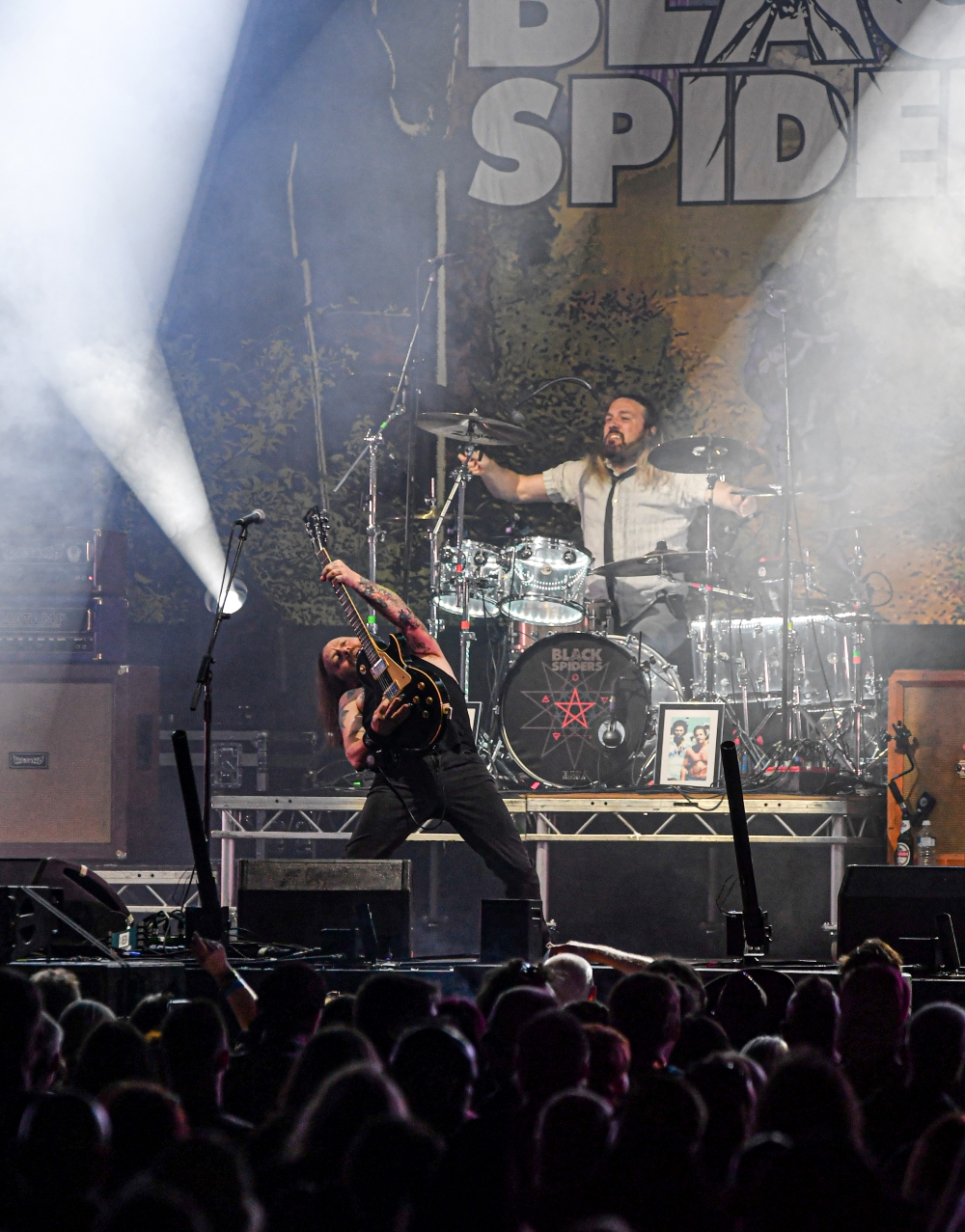 Then came the headliners for the opening night, Black Spiders, opening with an explosion of confetti, the band headed by Pete Spiby started an intense performance which didn’t hold up throughout their set. The first time since the start of Stonedead(f), i actually saw a moshpit break out, bottles being thrown on the stage, but for those involved, it was good fun with nobody getting hurt… As with Stop Stop‘s ‘fuck you’ chants from the crowd last year, this year it was the turn of the occasional ‘fuck you Black Spiders’ A great performance ending the day with 4 scantily clad dancers with ‘Kiss’ style make up dancing with the band to final track KISS Tried To Kill Me…