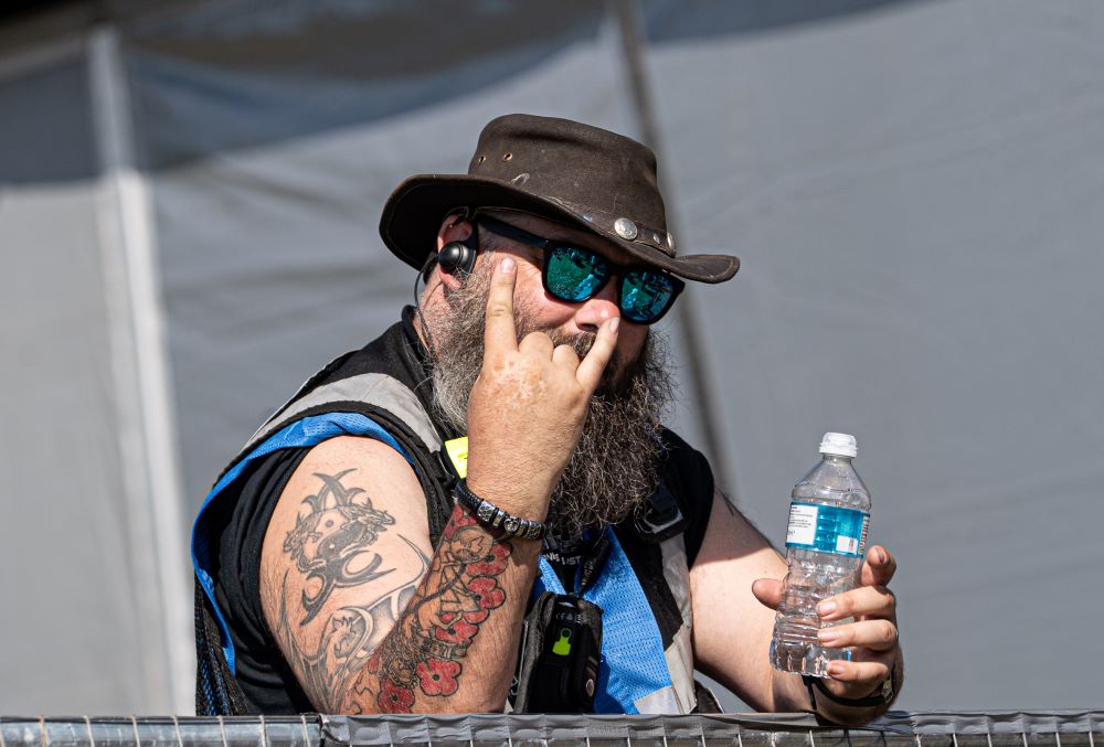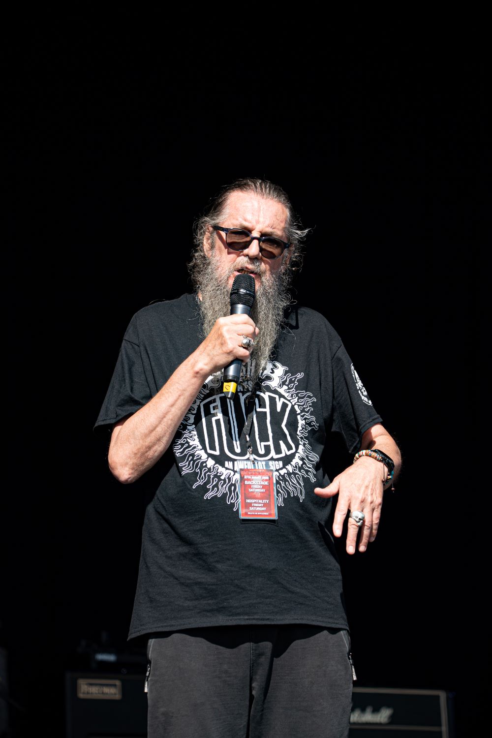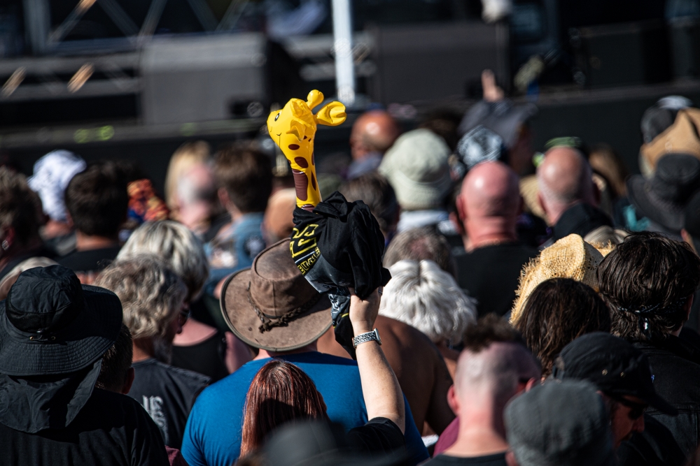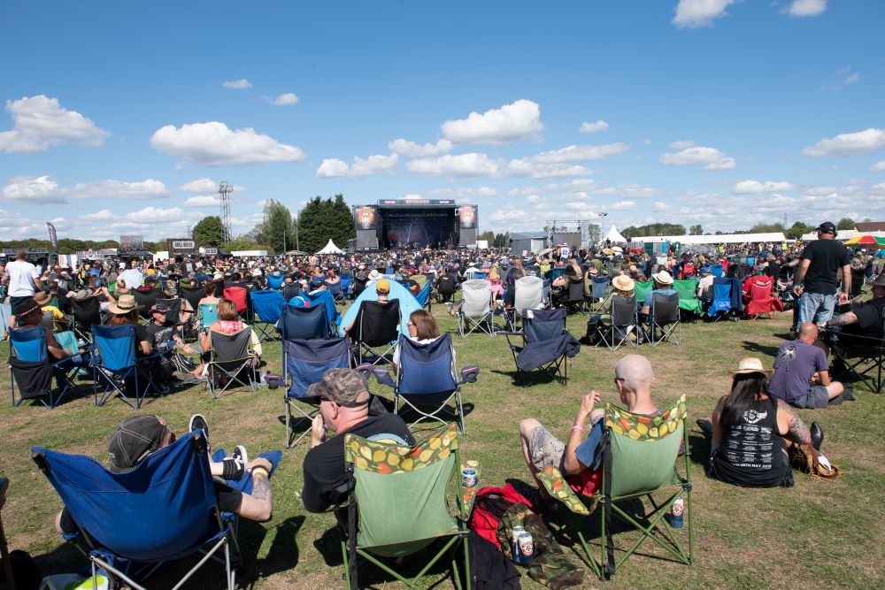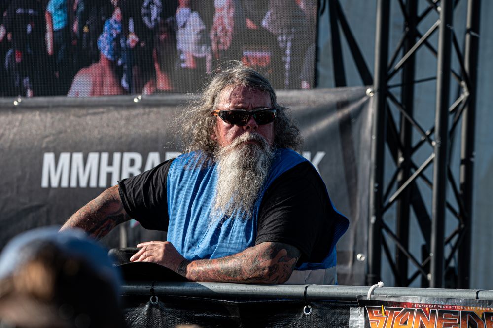 Gates opened on time, many excited rockers entering, posing for the obligatory selfie under the Stonedead arch, before drifting in with their chairs. Looking for their allocated seating area, (only joking)