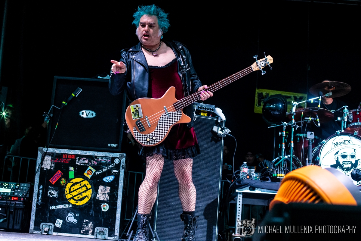 packed setlists. The band advertised (and mostly delivered on) playing 40 songs to reflect their 40 years as recording musicians, which they intend to play in 40 cities as their final tour. What made this a particularly fascinating challenge was their insistence on centering much of their performances around classic albums, (mostly) played in their entirety. Saturday night saw the performances of So Long And Thank You For All The Shoes and Pump Up The Valuum, while Sunday featured Wolf In Wolves’ Clothing and White Trash, Two Heebs, And A Bean. In some cases, several of these songs, despite being over 20 years old, have never played live. The Austin crowd would be the first to ever witness live renditions of And Now For Something Completely The Same, All Outta Angst, and Take Two Placebos And Call Me Lame. Better late than never I suppose. The tone was mostly set, after playing classic favorites like Dinosaurs Will Die and It’s My job To Keep Punk Elite, the band would either tell a joke or recall something nostalgic about a classic time they played Austin. During the encore on Saturday night, a change-up was made, and they decided to play Stickin’ In My Eye. Before the first chorus Fletcher Dragge of the band Pennywise took it upon himself to “hydrate” the band with a bottle of Tito’s Vodka that he involuntarily poured down their throats while playing. El Hefe, clearly irritated by this, stowed his guitar and decided to tackle the 6’5 Dragge who collapsed onto Mike Melvin, leaving him with a bruised nose. The next night while Melvin had a bandaged nose,the band would play it again, and finish it. Fat Mike paused to look offstage to Dragge before commencing and asked: “You’re not going to ruin this one, right Dumb-Dumb?” Back on Saturday, they closed out on Theme From A NOFX Album, and an injured Melvin set up a laptop and promised a performance of his solo “Melvinator” after-show for anyone who would stick around. On Sunday, after a similar showcase, Fat Mike shelved his gruff demeanor temporarily before the end, to profusely thank the city of Austin for always standing by them for all these years. With that, they concluded on the bizarre fan-favorite, Kill All The White Man.