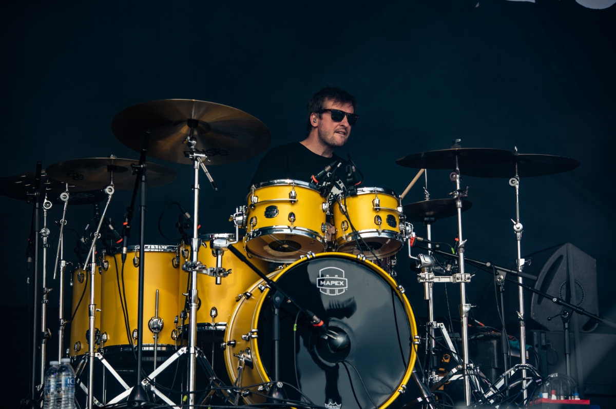 The risk of rain was evident, but we were prepared for it. The crowd was noticeably larger and noisier as Collateral opened the day’s shenanigans. Playing the biggest gig of their career to date and visibly emotional about the fact, Collateral took to the stage late morning and got the ball rolling. Despite my erstwhile colleague’s viewpoint, Collateral to me represents a brighter breezier time when rock music was all sunshine, fast cars and Jack Daniels. They play it like a British Bon Jovi and if they continue on this trajectory, then we’ll be seeing them drop some anthems when their second album drops next year. Unlike Smudge who described them as average with average songs and average ability, I think they stand out from the crowd and leave a trail of also rans behind them in the current classic rock scene here in the UK. The crowd definitely were on my side as well which meant the day got off to the best of starts as well.