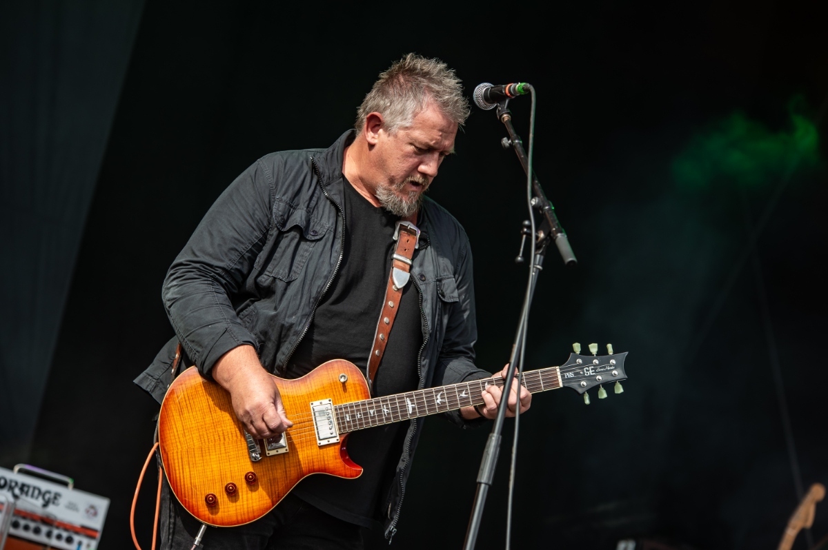 My colleague Smudge decided it was time for food, so he decided to skip King King who, as another band I’ve seen more than a few times, felt out of place at the festival. Smudge himself noted that the energy levels grew with each act so by the time King King came on the crowd were buzzing. King King sadly felt a bit flat. They are great at what they do, no doubt, but it was just too ‘nice.’ Chilled blues rock maybe was needed mid afternoon but it was left to The Answer to put some energy back into the crowd. Singer Cormac Neeson is a showman and short of walking on water he gathered the faithful and proceeded to give a sermon (musical) by leaping into the crowd and cajoling them to get down on their knees around him, but bouncing back up and ‘almost’ starting a mosh. Slightly surreal, uplifting and yes a little inspiring, but it worked and by the time Therapy? came on… things were firing again.