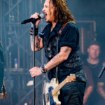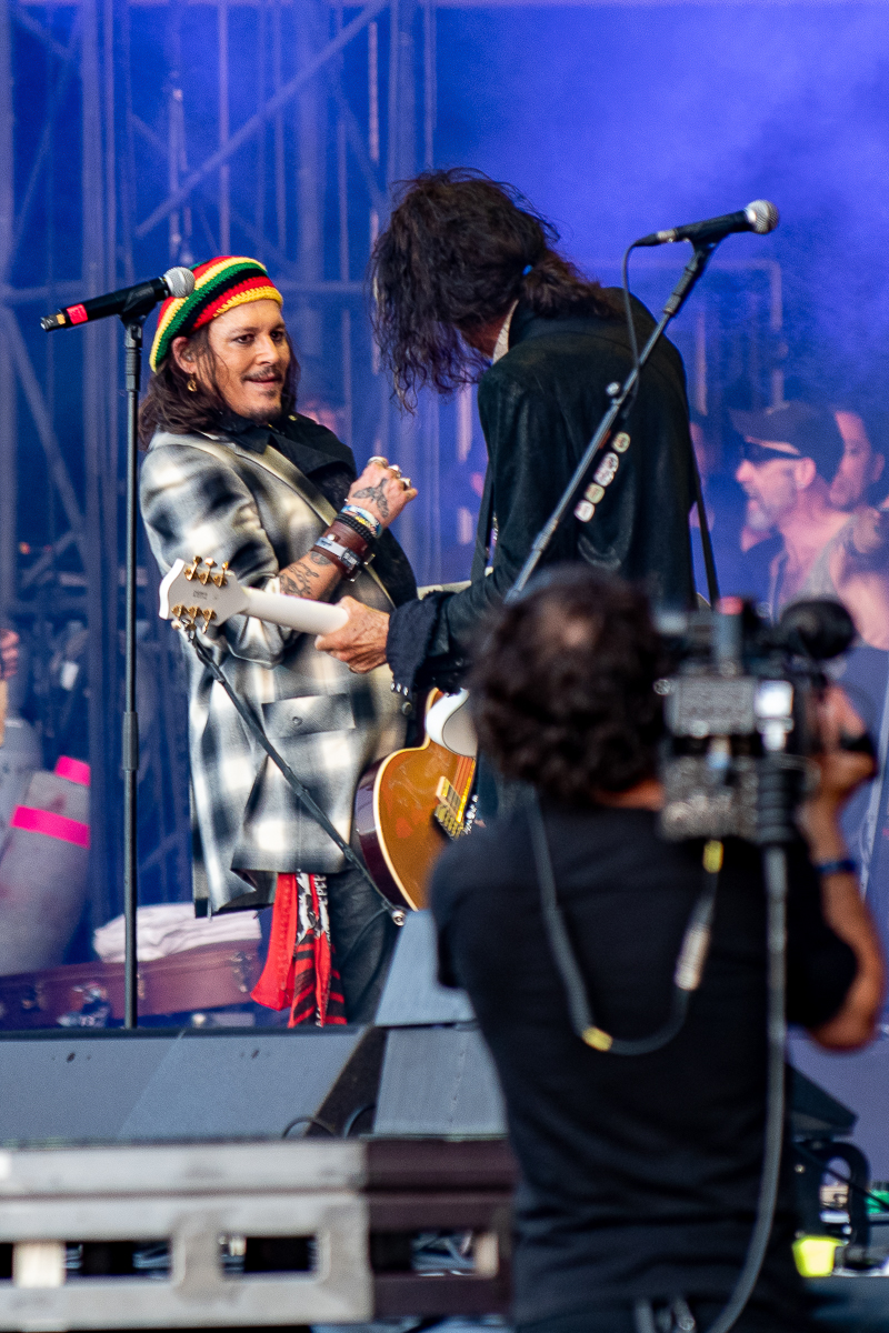 Billy Idol alongside Steven Jones and Paul Cook of Sex Pistols fame. With a set list ripped from the heart of the Punk Explosion of the 70’s,Billy Idol roared onto stage in his signature leather jacket, curled lip, upturned collar and blonde spikey hair with every bit of his rock’n’roll charisma. Of course, this magical set had to end with huge anticipation mounting as it seemed thousands of more people squeezed onto every square millimetre of available turf. It’s time for powerhouse rock supergroup Hollywood Vampires hit the stage.