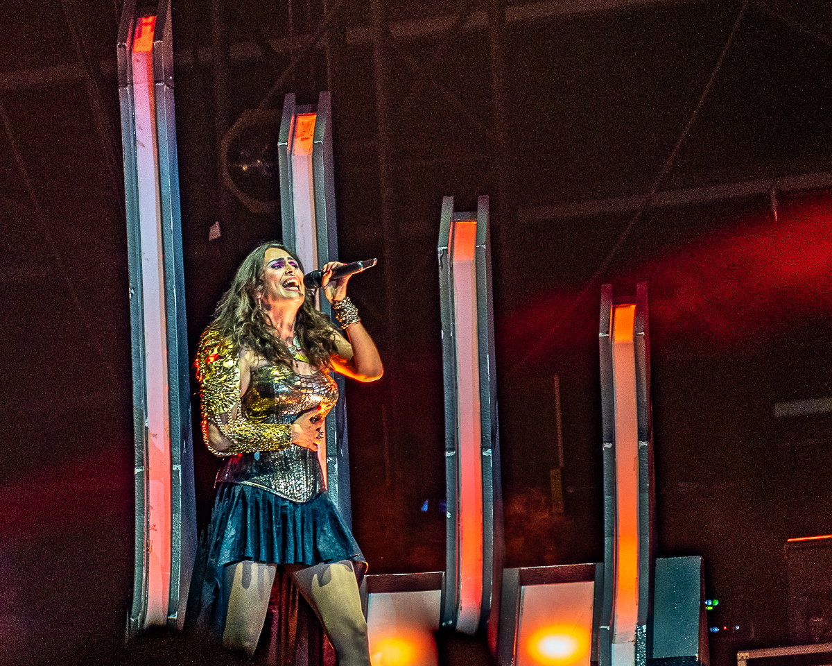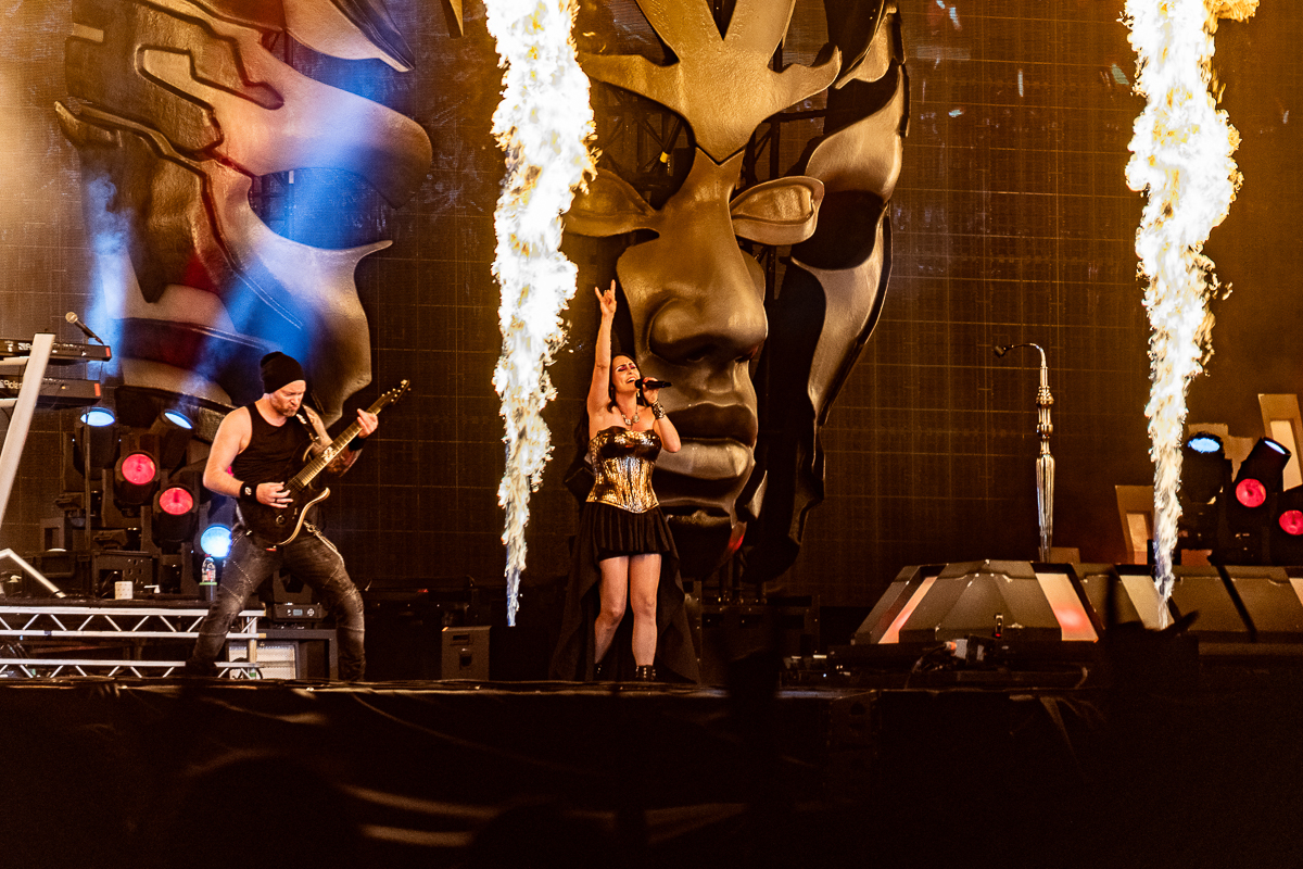 My focus shifts from the enormous mascot ‘Eddie’ on stage and occasional sightings of Iron Maidens band members through the tightly packed heads of the crowd, and from the corner of my eye I see on the adjacent main stage behind a huge draping black curtain, an elaborate onstage set coming together. Deciding to relocate for the adjacent Main Stage for the final band of the day, I manoeuvrer to get a good glimpse of Dutch symphonic metal outfit ‘Within Temptation,’ who delivered an incredibly captivating and powerful performance that left Hellfestians in awe. The visual aspect of Within Temptations performance was spectacular with elaborate stage set up to include stunning lighting effects and mesmerising visuals enhancing the atmosphere of the band’s music. Costume and stage presence added an extra layer of theatricality. Overall, Within Temptations performance at Hellfest was definite highlight of the festival and introduction of a new band that has made to the top of my current playlist.