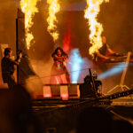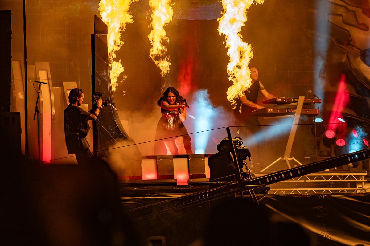 technical mastery they are known for. The Altar convulsively erupted into a frenzy as band members McKinney and Rossi flawlessly executed the intricate guitar work and hooks of ‘Follow the signs.’ As final notes of the set rung out, Born of Osiris had left an indelible mark on the Hellfest crowd. A gaze to the adjacent Temple stage I can’t help but notice intricate lighting adjustments by stage crew under a kaleidoscopic blend of colour in preparation for ‘Faun’ joining Hellfest from the forests of Bavaria who delivered a mesmerising performance of folk and medieval music. Faun’s unique blend of traditional instruments, ethereal vocals and captivating melodies transported Hellfestians to a different time and place. Complete washes of blue, then blends yellow and red light eerily in a dense smoke haze created a magical and unforgettable experience for all.