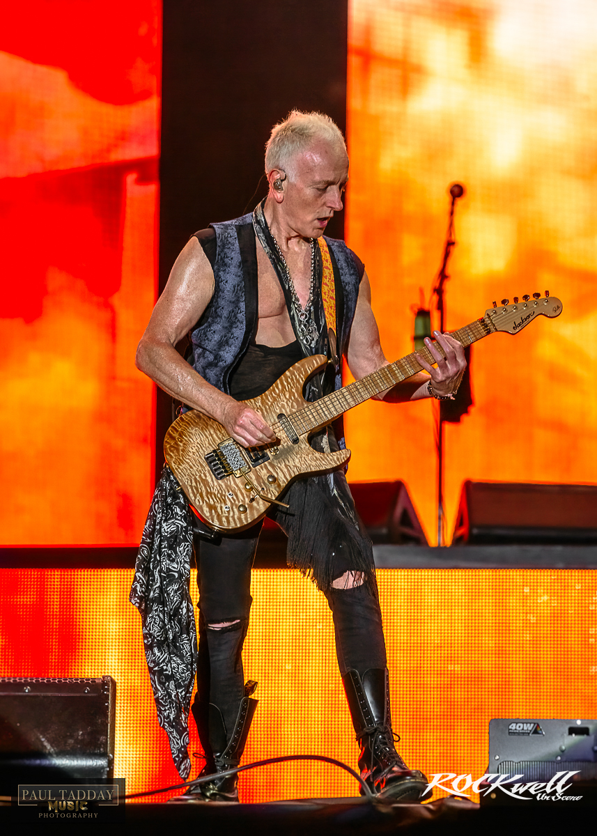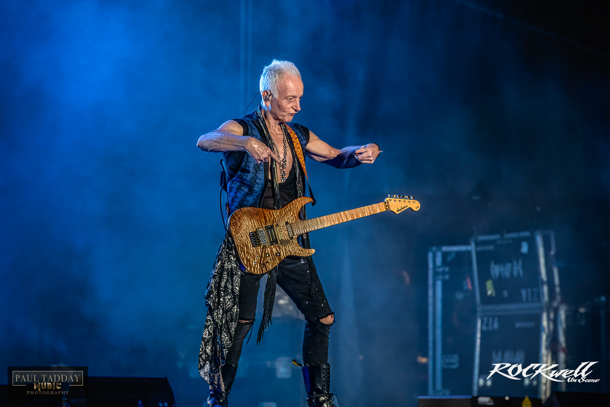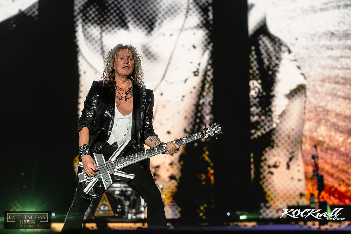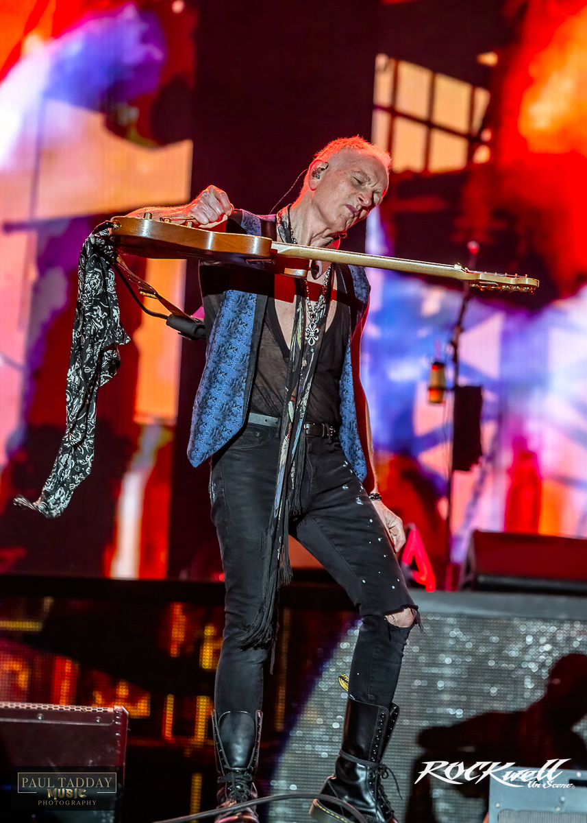 Phil’s guitar playing. One of the highlights for me is always the instrumental sojourn into Switch 625 after Bringin’ on the Heartbreak. Viv and Phil nailed this classic, taking spotlights front and centre to showcase their tandem guitar brilliance in absolute style. Rick Savage is the back bone of Def Leppard. He held the bottom end brilliantly, engaged with the crowd continuously and sang flawlessly. It could never be denied that Joe Elliot has been of the finest frontmen in the hard rock world for the last 40 years. His vocals were as strong as ever last night and his performance was just classic Joe.Rounding out the night with Pour Some Sugar on Me, Rock of Ages and