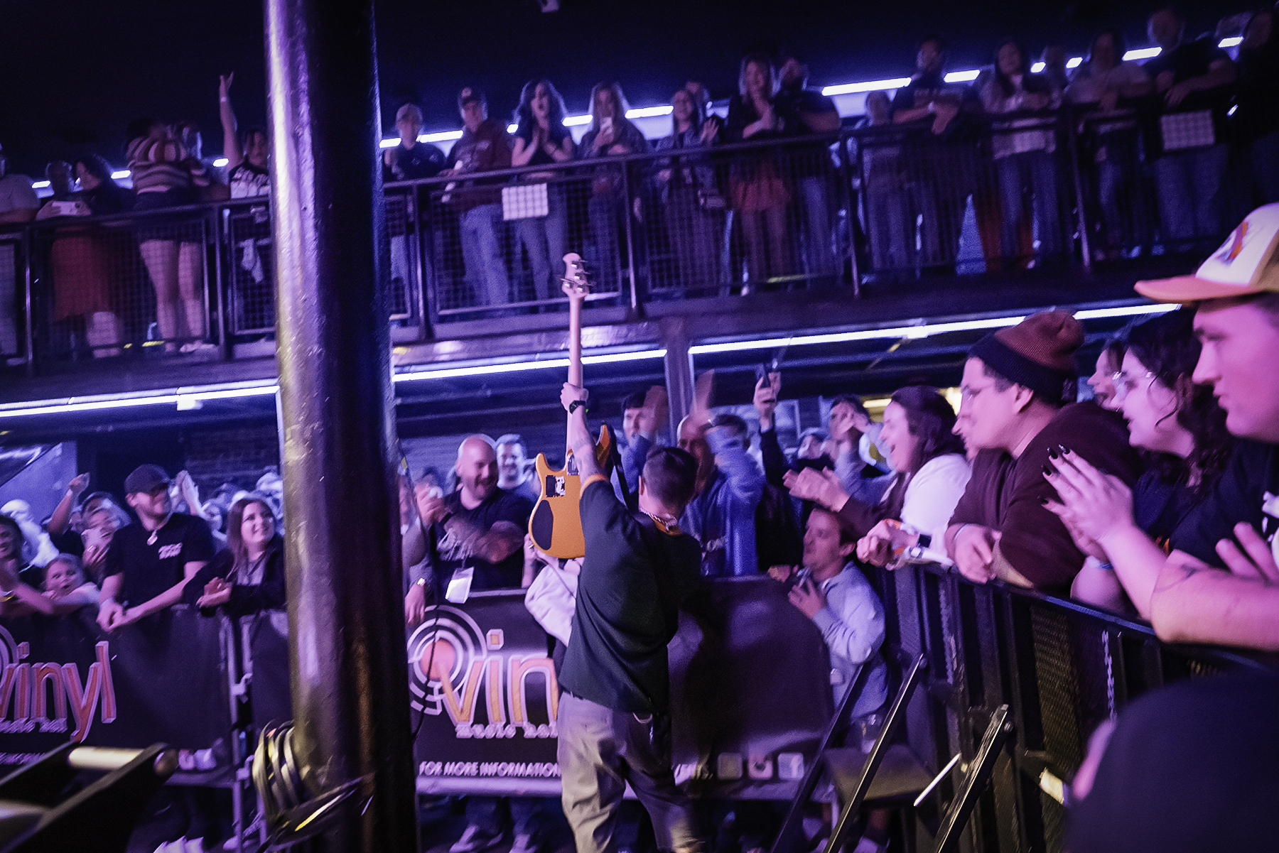 I never thought that there would be much or any music scene in the “Panhandle” to be fair. That may sound harsh, and I do not mean a local scene. I mean a scene that puts on shows that attracts fans from the 50 to 100-mile radius. However, I have been proven wrong and nothing could please me more. The venue is Vinyl Music Hall – downtown Pensacola on Palafox. This venue boasts an 857-person capacity and features a street/ground level stage and a second level balcony. If you have ever been to Trees in Deep Ellum (Dallas, TX), Vinyl has a similar layout & capacity, and that is a compliment. The main differences are the stage is near the back with band merch and a small bar behind it, and fans can view the bands on 2 sides of the stage instead of one/just the front. The band green room(s) plus band load in/out are directly behind the stage and separate from the fans.
