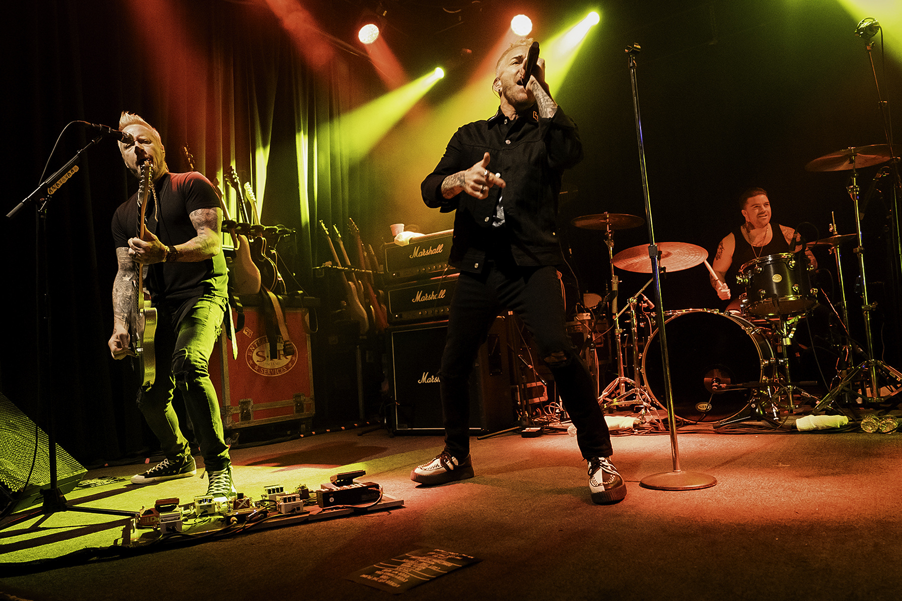 I will be honest, this was my first time seeing this band. I was excited to see a new band and get revved up for the rest of the show. Let’s be honest… that is what the openers are supposed to do. I feel like I and many others do not always give the first band on the bill, the openers, the respect they deserve. They have a huge task… to feel out the crowd, to start the night off, to gain fans, and to get their name out there as well. The Dollyrots took the stage with bravado and great showmanship. Lead singer Kelly Ogden had a million-dollar smile, with glittery Pop-Punk vocals to match. Doing double duty, she also was the bass player of the band. Flawlessly she showcased her bass skills. For a 3 piece, this band packed a full pound whopper into your ear holes. I would recommend checking them out if Pop Punk done right is your thang…