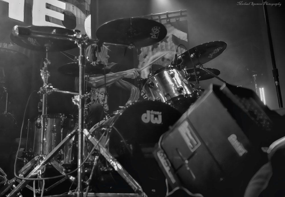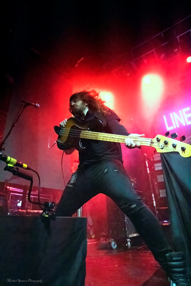 First up on the bill were Kenosha, Wisconsin (USA) based Lines of Loyalty. When I first looked at the stage, I wondered where they were going to play. The stage was packed with equipment and there was barely enough room for four bands equipment. While the stage was shallow, the sound was deep. This was my first time seeing LoL and their melodic metal sound was exciting and took me back to the days of three-piece bands because that’s what they are. Comprised of Nubz Morrison on vocals and guitar, Redo Ianni on bass, and Brayden Pike on drums, they have a sound that will make you stop and listen. They are currently out supporting their 2023 release Hurts to be Human. If you get the opportunity to catch them live, even if they are the support act, get there early and catch their set. Tonight, their set consisted of the following: