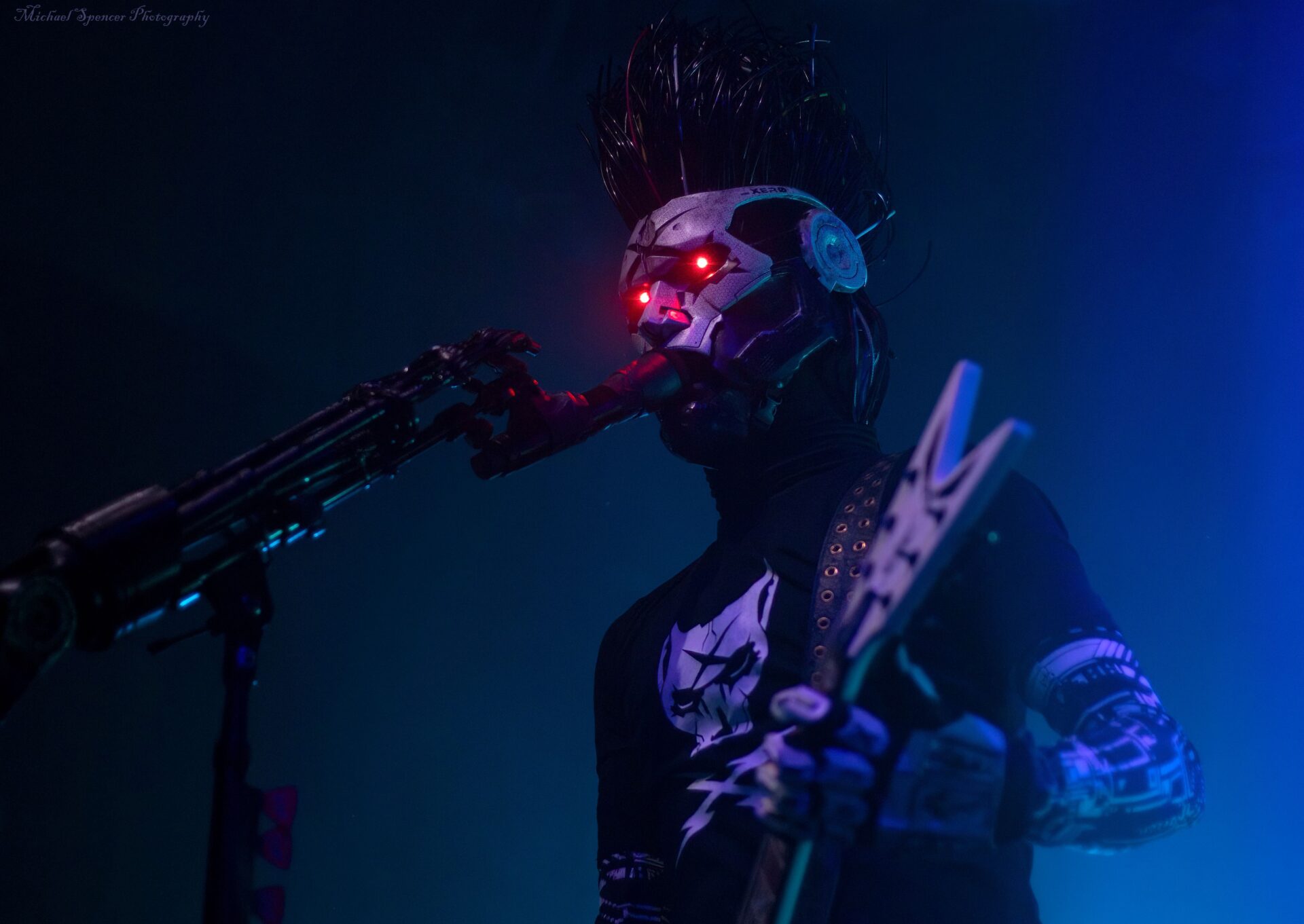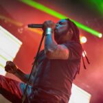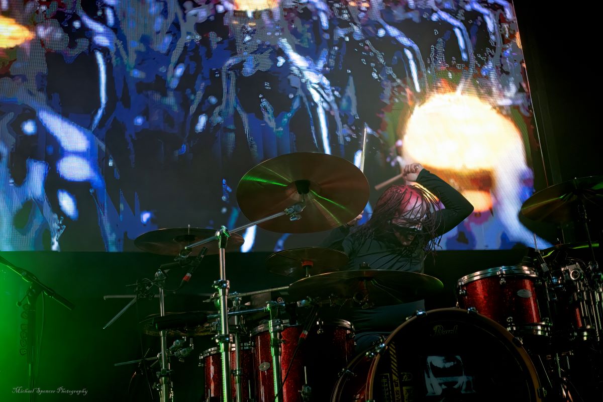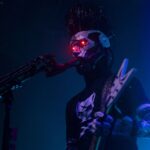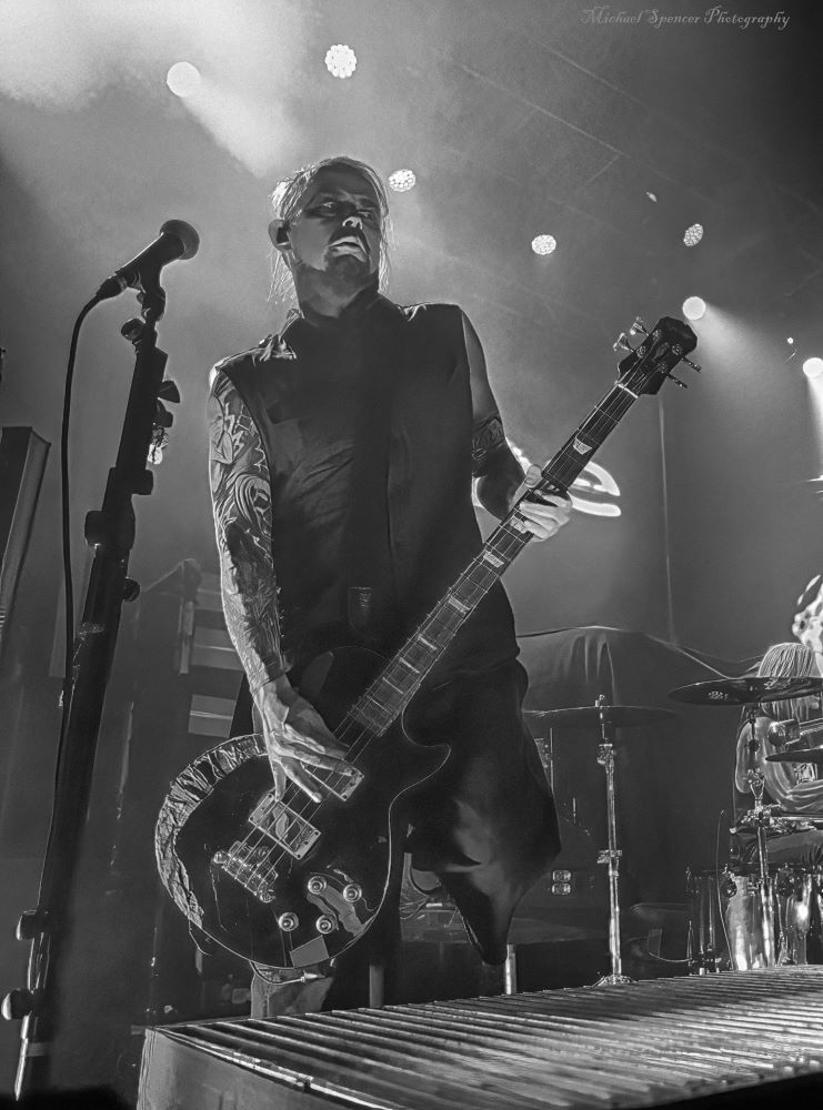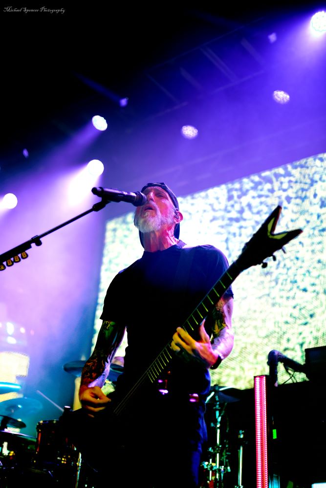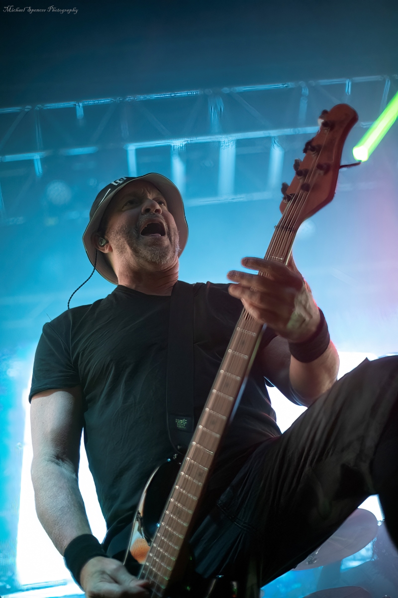And then it was time to changeover for Static-X. Static-X was formed in 1994 in Los Angeles, California by Wayne Static (vocals) and Ken Jay (drums) after the two moved to LA. They rounded out the band with Tony Campos on bass and Koichi Fukuda on guitar. They went thru some lineup changes and breakups over the years and released 6 albums before the untimely death of Wayne in 2014. The band had essentially broken up in 2009 and after Waynes’s death, the three remaining original members decided to reform and release an album of music that they had recorded with Wayne and invited some guest vocalists to contribute, one of them being longtime friend Edsel Dope. This is titled Project: Regeneration Vol. 1 and was released in 2020. And then they decided to tour. But Wayne was gone. Enter Xer0. A masked singer, wearing a mask that looked very much like Wayne, and worn by someone they declined to identify. It was rumored to be Edsel, but he denied it. Later, he did admit he was Xer0. A Static X show is a spectacle in and of itself. Quite often, you find a great live band musically, but lacking in stage show, or vice versa, a great show, but lacking in musical skills. Let me assure you, Static X has both covered. Durin the changeover, they build the anticipation with house music such as Neil Diamonds Sweet Caroline, which got the audience singing, followed by Walk by Pantera and then Time Warp from The Rocky Horror Picture Show. And then the lights go down, the smoke machines fill the room, all you can see on the stage are two red, glowing eyes, and the lights come you, and…. Bubbles, lots of bubbles. And then you notice a robotic creature with a grin, that quickly turns into a snarl, and he is shooting bubbles everywhere. And the music starts. What has been described as every form of metal to ever exist, my best description would be if Pantera and Ministry had a child, that child would be Static-X. They start off with Hollow and follow with Terminator Oscillator and run through a 16-song set that will leave you confused, conflicted and ultimately, content. There is mayhem at every turn, and you can tell that they are very good at what they do. This is a theatrical presentation that is set to a good soundtrack. Some bands you go to listen to and others you go to experience. Static-X is the latter. They released Project: Regeneration Vol. 2 in January of this year. Their set consisted of: