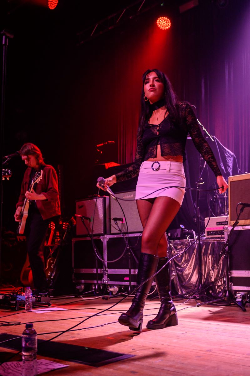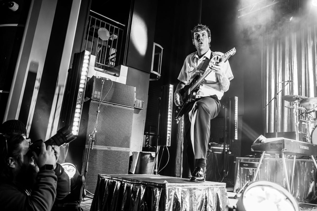Throwing roses into the crowd, The Mysterines warmed up the crowd. Lia Metcalfe raising the temperature in a sheer lace black top accompanied by a white mini shirt on this wet and windy valentines night, wowed the crowd with her alluring stage presence. It wasn’t long before the crowd started moshing to the Liverpudlian quartets “Last Dance”, featuring tales of Bruno Mars and extraterrestrials. With steaming guitar riffs and husky vocals, the sound resonated across the city’s Wulfrun hall.