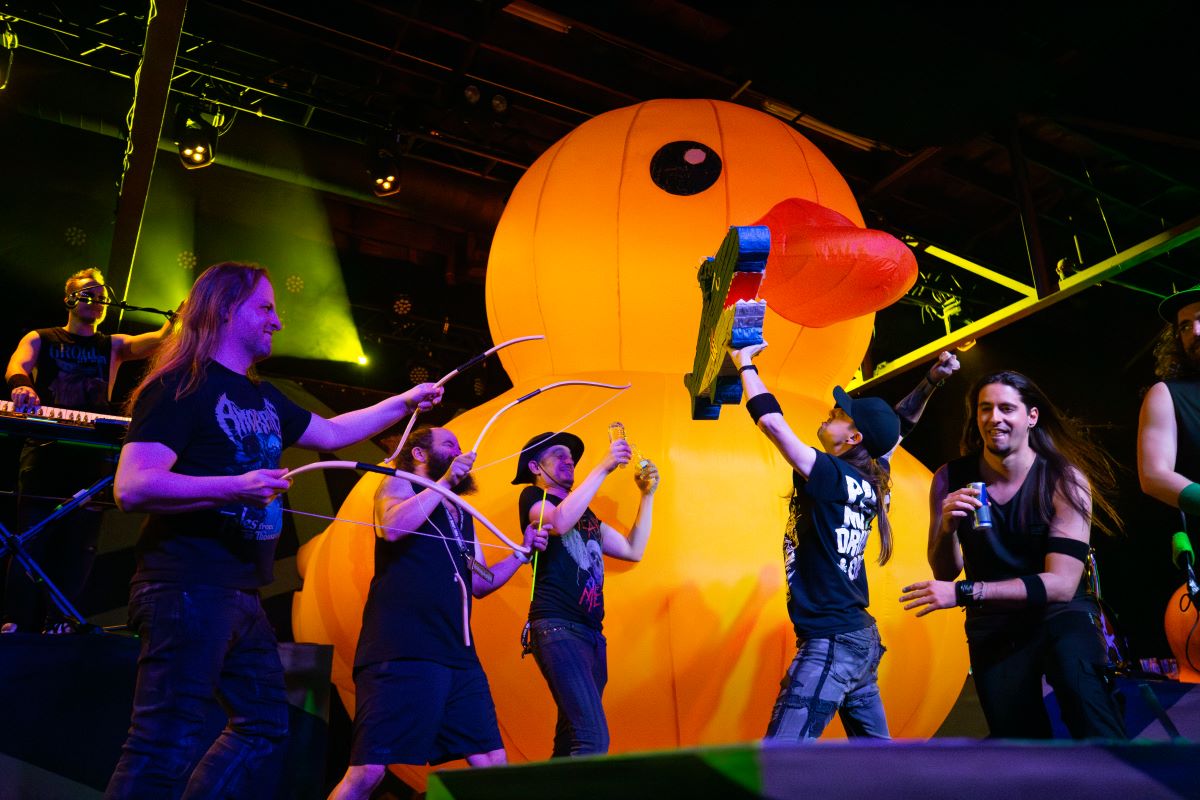 Now was the moment everyone had been waiting for—the Rise of the Duck!!! As he was summoned on stage, you could hear for miles the cries of “DUCK, DUCK, DUCK” until the final moment, when his feathers were fully inflated, and the crowd went wild! Okay, so maybe it was not the exact thing we were waiting for, but it was a fun transition waiting for the Pirate Metal Band ALESTORM.