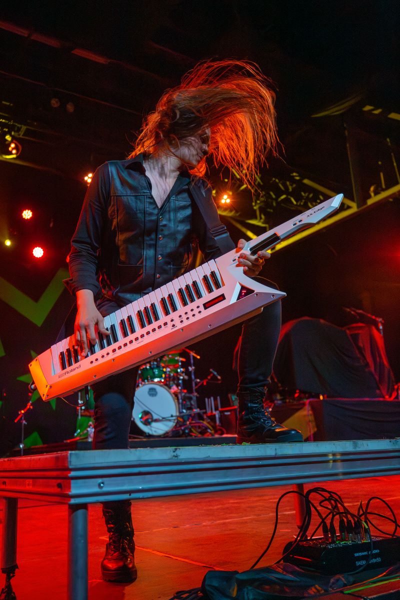 GLYPH quickly started the night with their modern power metal igniting the stage when they arrived. This crew of intergalactic mercenaries who escaped a dying planet in their spaceship, the VSS Dragonlord, is created by past members of Skelator, Greyhawk, Gatekeeper, and Ravenous, Glyph, where they made their debut in 2022 at Mad with Power 6, which is the largest Melodic Metal Festival in North America. The energetic style and enjoyment of the band showed through every hard-hitting chord that was struck. It was a short set, leaving the masses craving more.