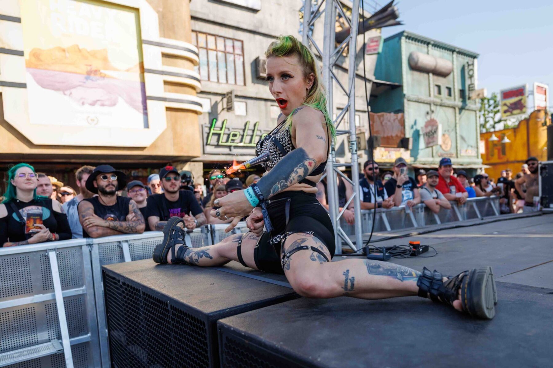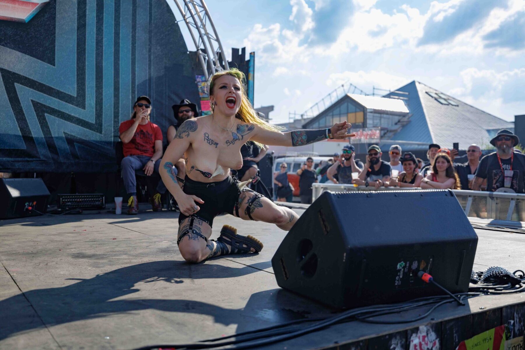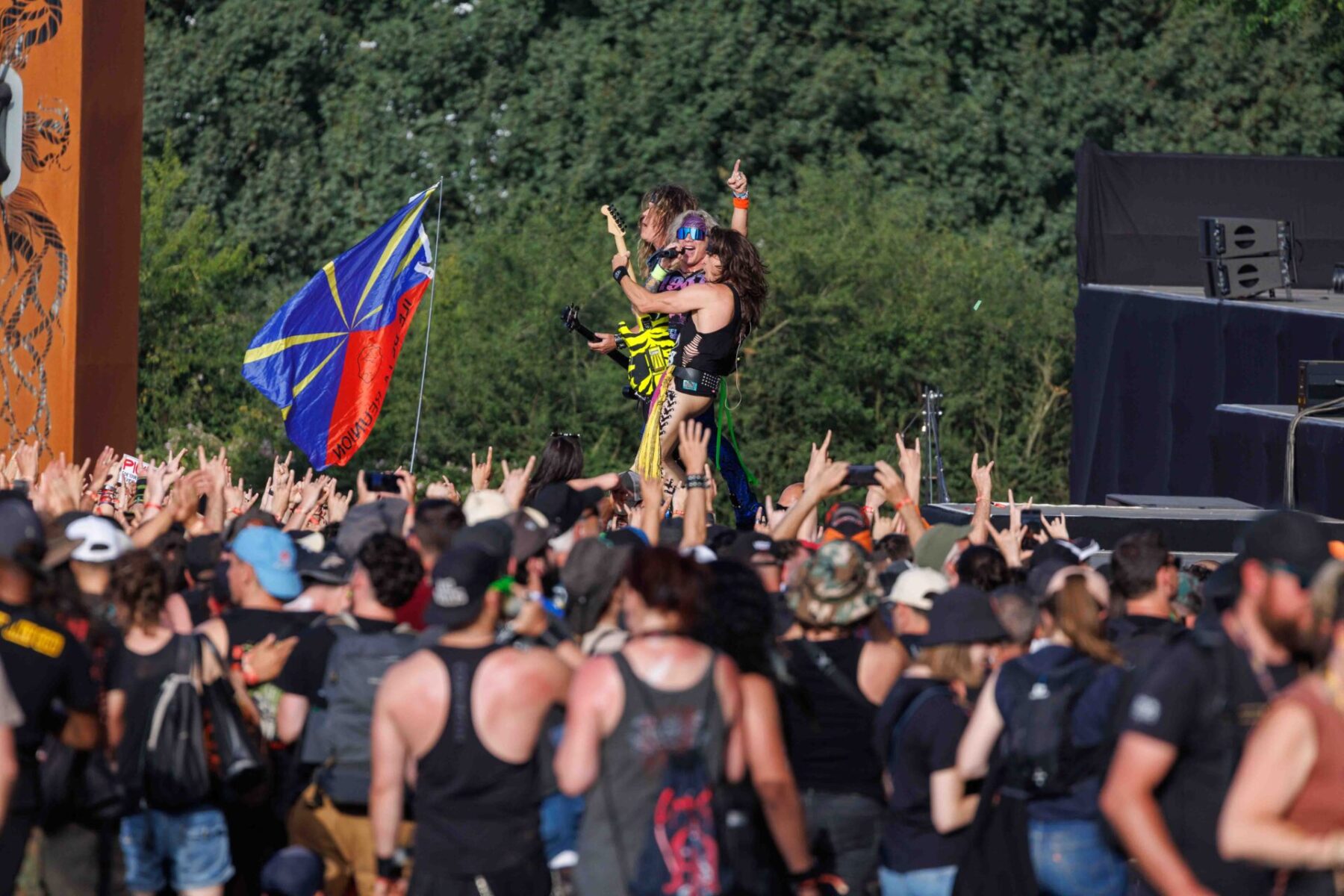 Hellfest is globally recognised as being predominantly a metal event however over the last few years has increased the genre of artists to accommodate for broader tastes. Bring on Steel Panther well known for their over-the-top comedic approach to 1980s hair metal, Steel Panther’s set was both outrageous and entertaining. Steel Panther brought their signature blend of 1980s hair metal parody and explicit humour to the main stage. Their performance was marked by audience participation, with hundreds of female Hellfestians joining them on stage, embodying the band’s outrageous and non-politically correct persona.