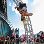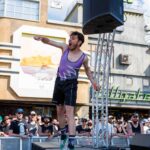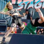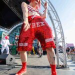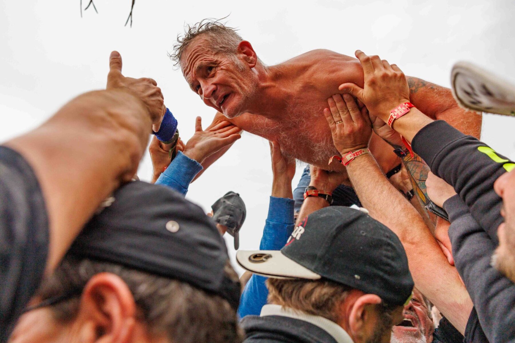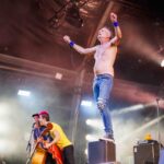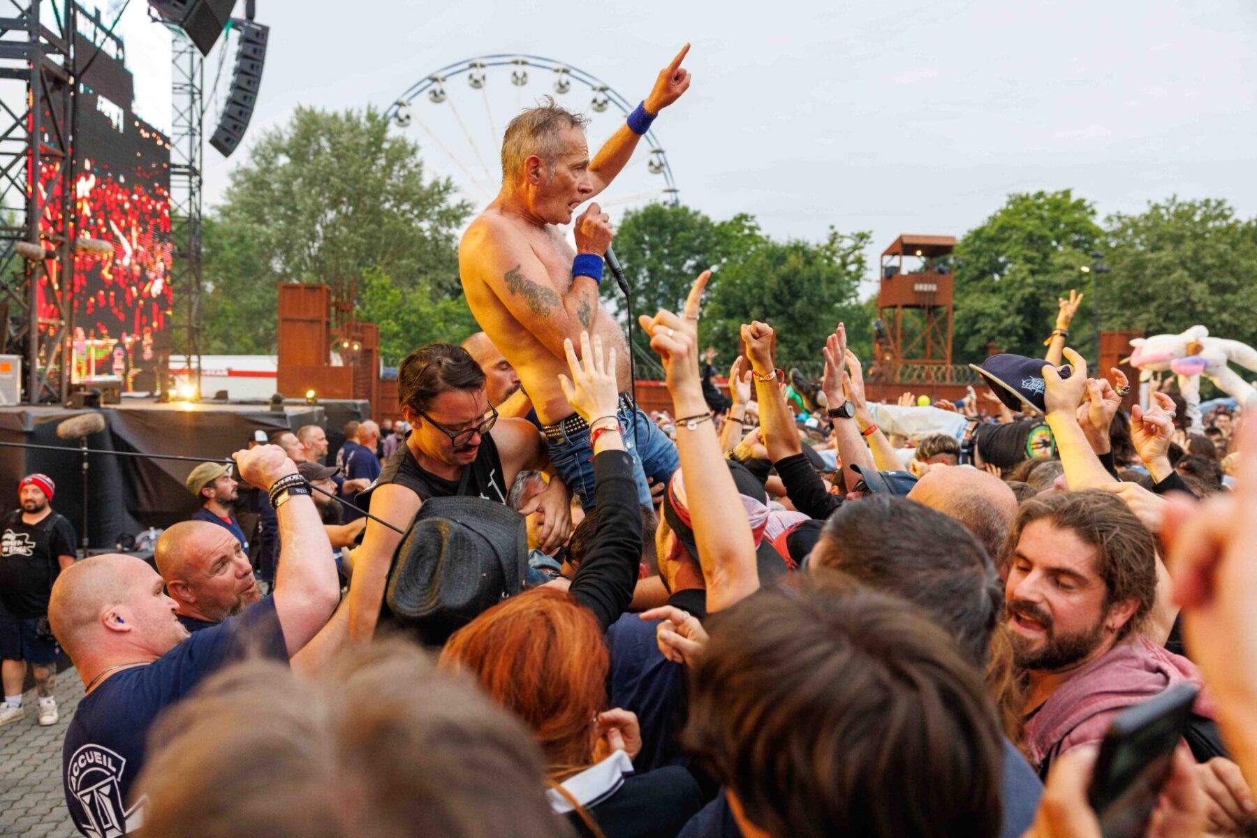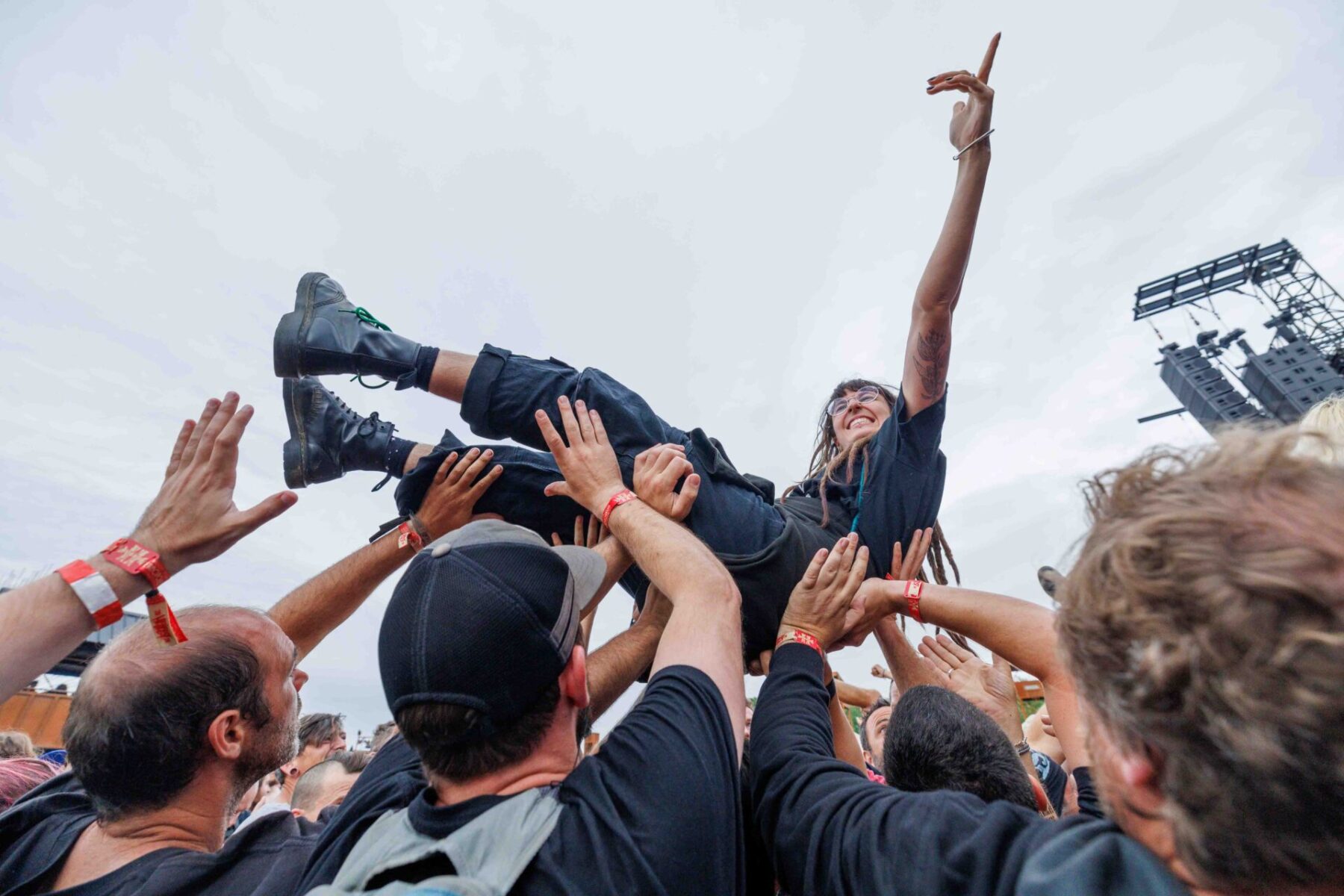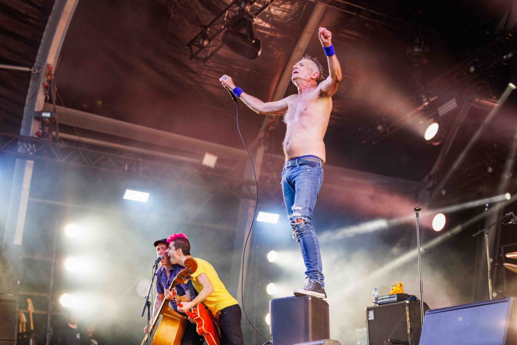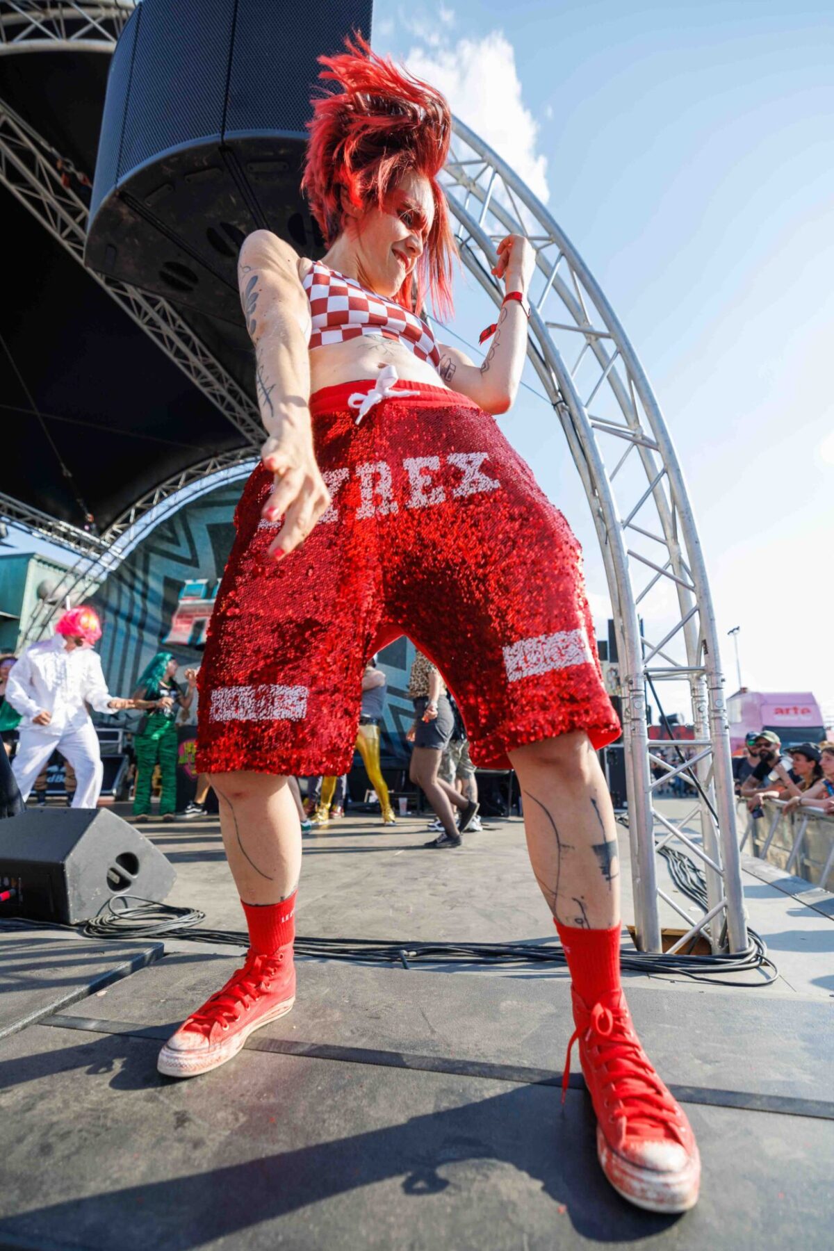French punk icon Didier Wampas led his band, Psycho Attacks, in a lively performance on the Warzone stage. Their eclectic mix of punk rock and French chanson created a unique atmosphere, highlighting Didier’s charismatic stage presence. Didier mid set leapt from the stage like a 20yr old and was gleefully crowd surfing and propelled by his thousands of fans all the way to the rear of the Warzone arena. Chasing him all the way with camera in hand was exhausting but certainly an epic experience that was more than worthwhile to shoot some epic pics of Wampas in flight.
