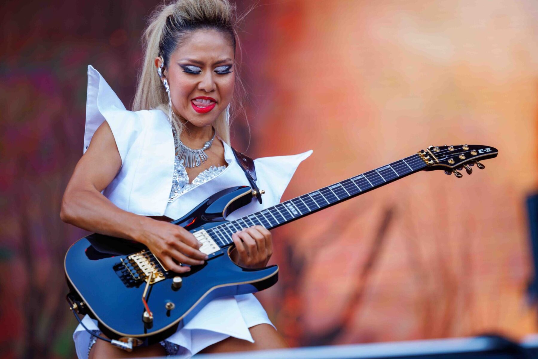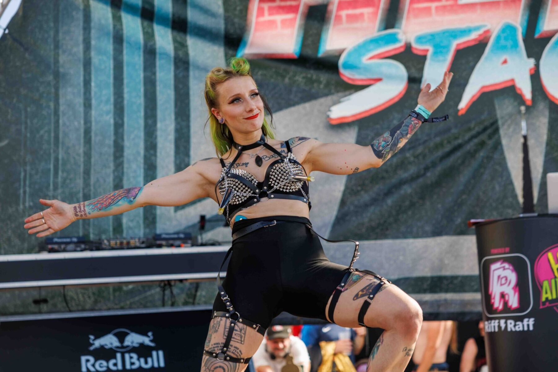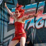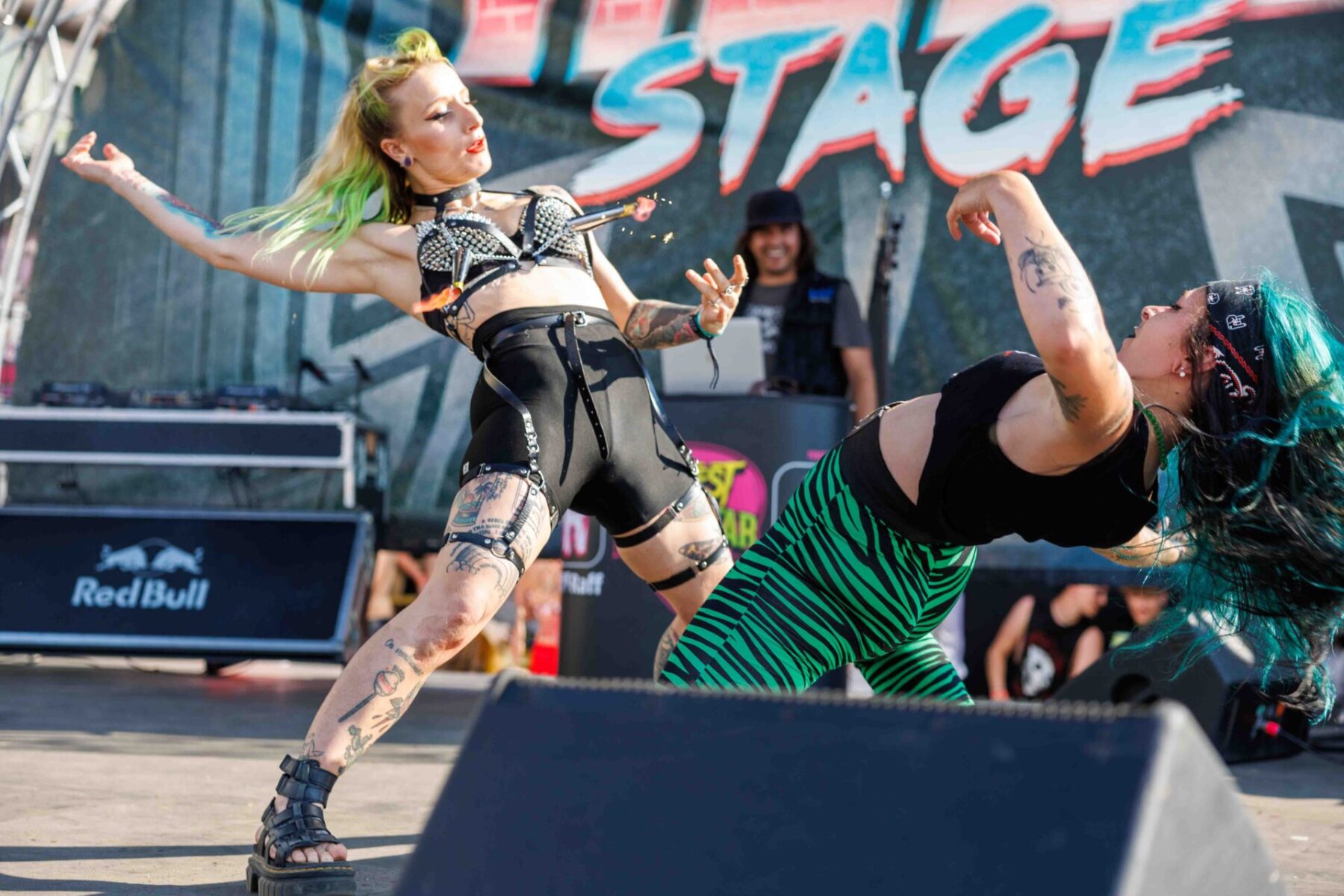their high-energy performance, blending aggressive riffs and dynamic vocals. Their setlist, featuring tracks like “D.R.I.L.D.O.” and “Fukstar,” showcased the band’s raw intensity and stage presence. The duo’s chemistry and relentless energy captivated festival-goers, solidifying their reputation as a formidable live act. Eyes just could not leave the dynamic supercharged performance of vocalist Milkie Way as she vigorously manoeuvred sometimes leaping across the stage.