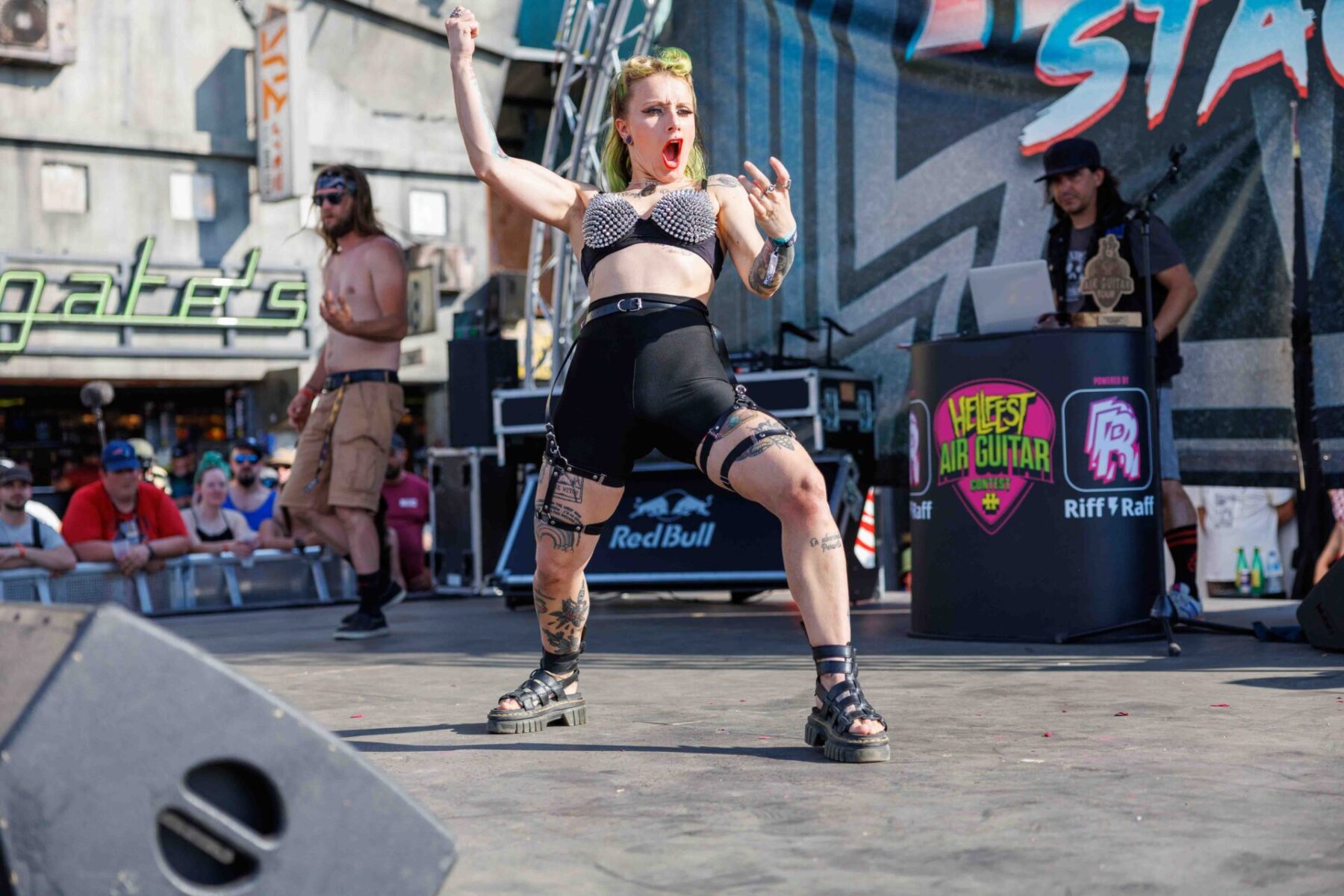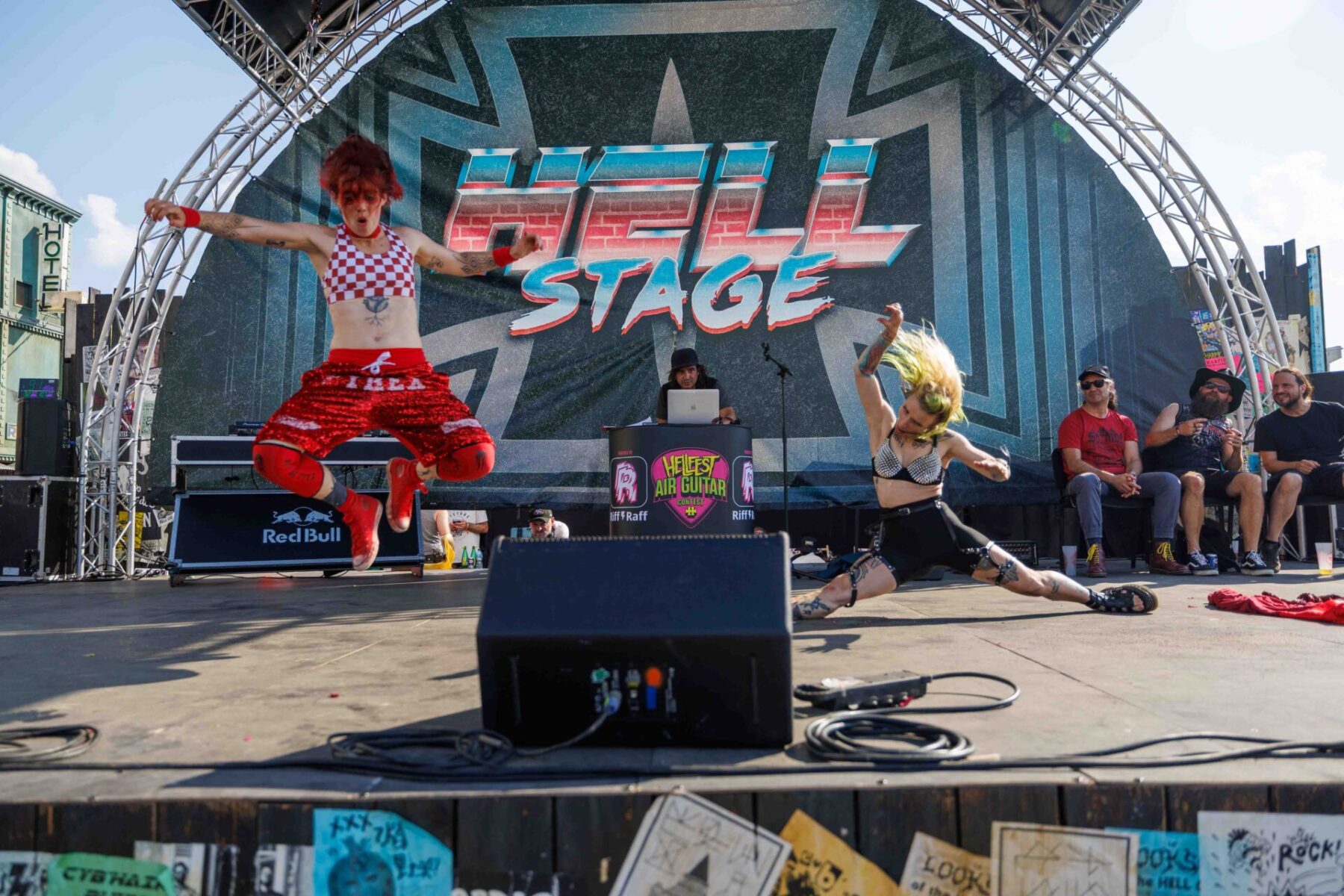 STOP RIGHT THERE….. Before we get to the REAL rockstars, lets get the wannabee rockstars out the way- The Air Guitar competition at the Hell City stage….