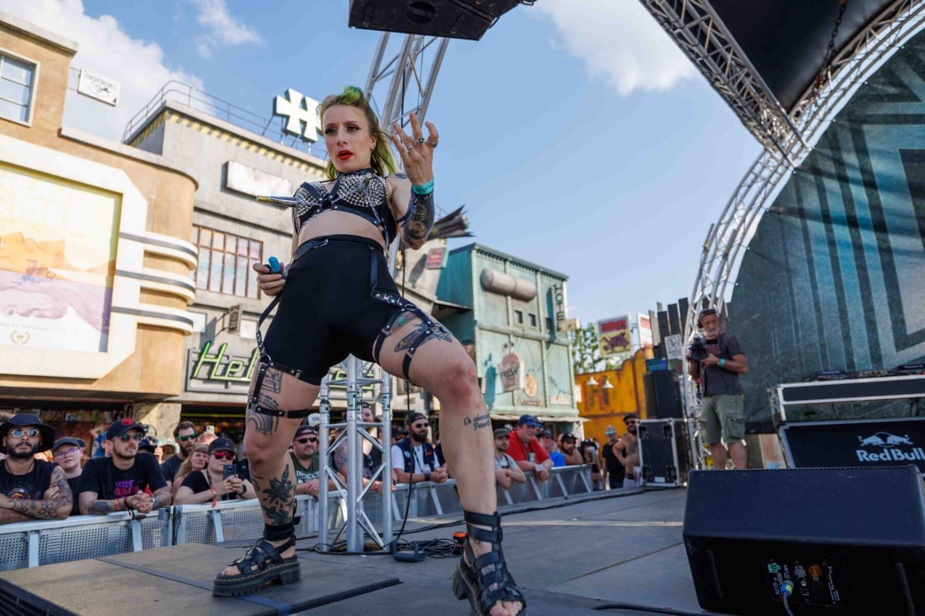 kaleidoscope of bars, rest areas and other features, a quick breather was required. The Valley stage was just the right area and vibe as Chelsea Wolfe mesmerized the audience with her haunting vocals and dark, atmospheric soundscapes. Her performance provided a contrast to the festival’s heavier acts, offering a more introspective experience giving me a much-earnt break after the ferocity of the two previous Warzone sets.