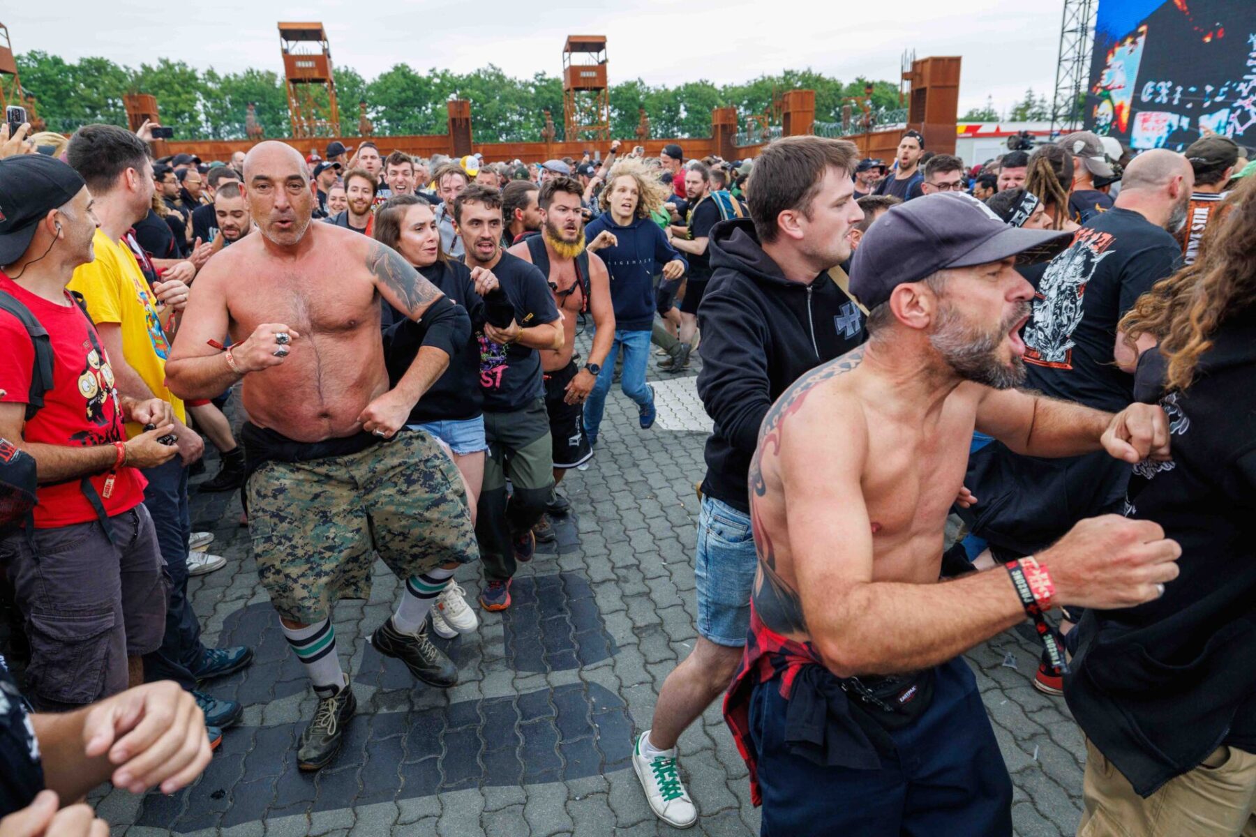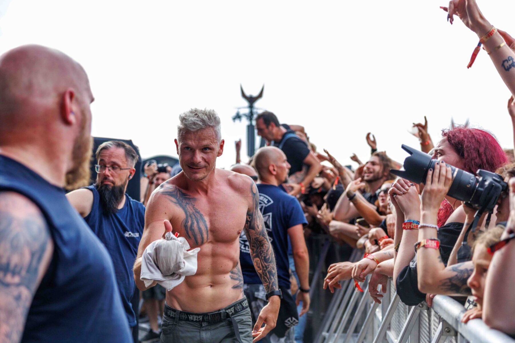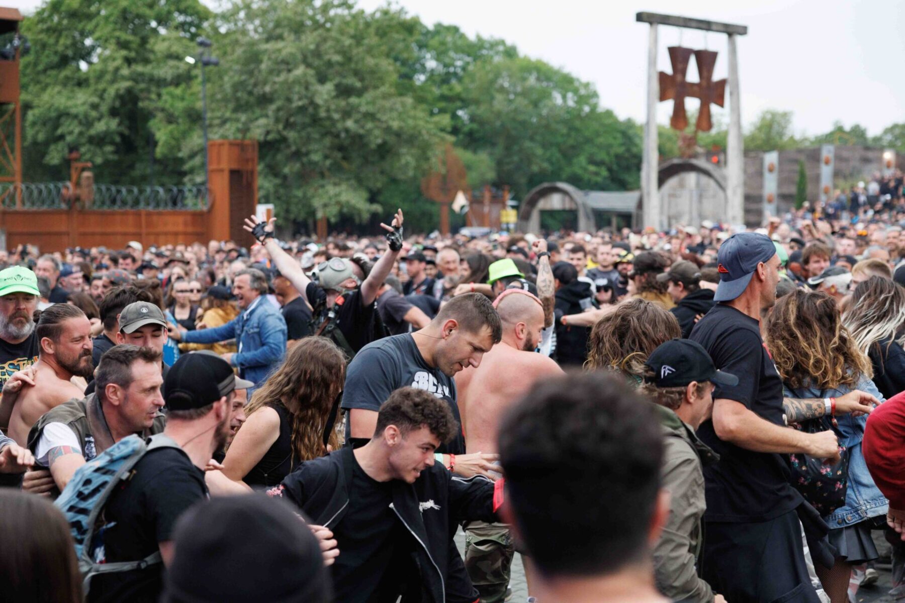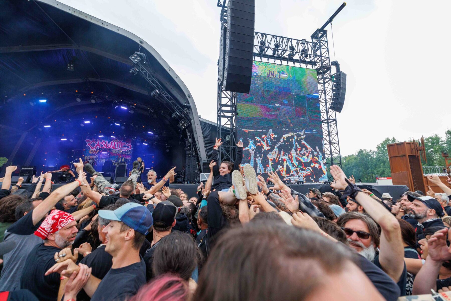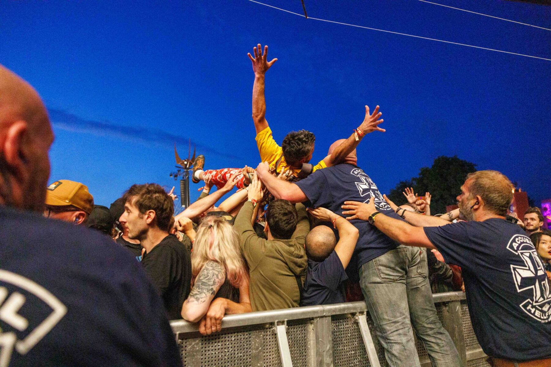 There was not a chance in the world that Slaughter to Prevail were not at the top of my list for bands to see. The demonic gutteral voice of Alex Terrible is a commanding experience leaving you with flashes of visions of the Russian giant when your eyes are closed for days. By far one of the early standout moments during Day 1 occurred during Prevail’s set, which featured Terrible’s attempt to create the largest “Wall of Death” in history. Although it’s always difficult to verify if any record was indeed broken, the viral footage of thousands of fans rushing toward each other added to the chaotic, electrifying atmosphere that Hellfest is known for. Bravely, I managed to place myself in between walls of maniacal infused metal heads as the walls closed in to snap off a few shots ( I have provided these images) Respect and trust being very clear with moshers as this spectacle alone became one of the most talked-about moments of the festival .