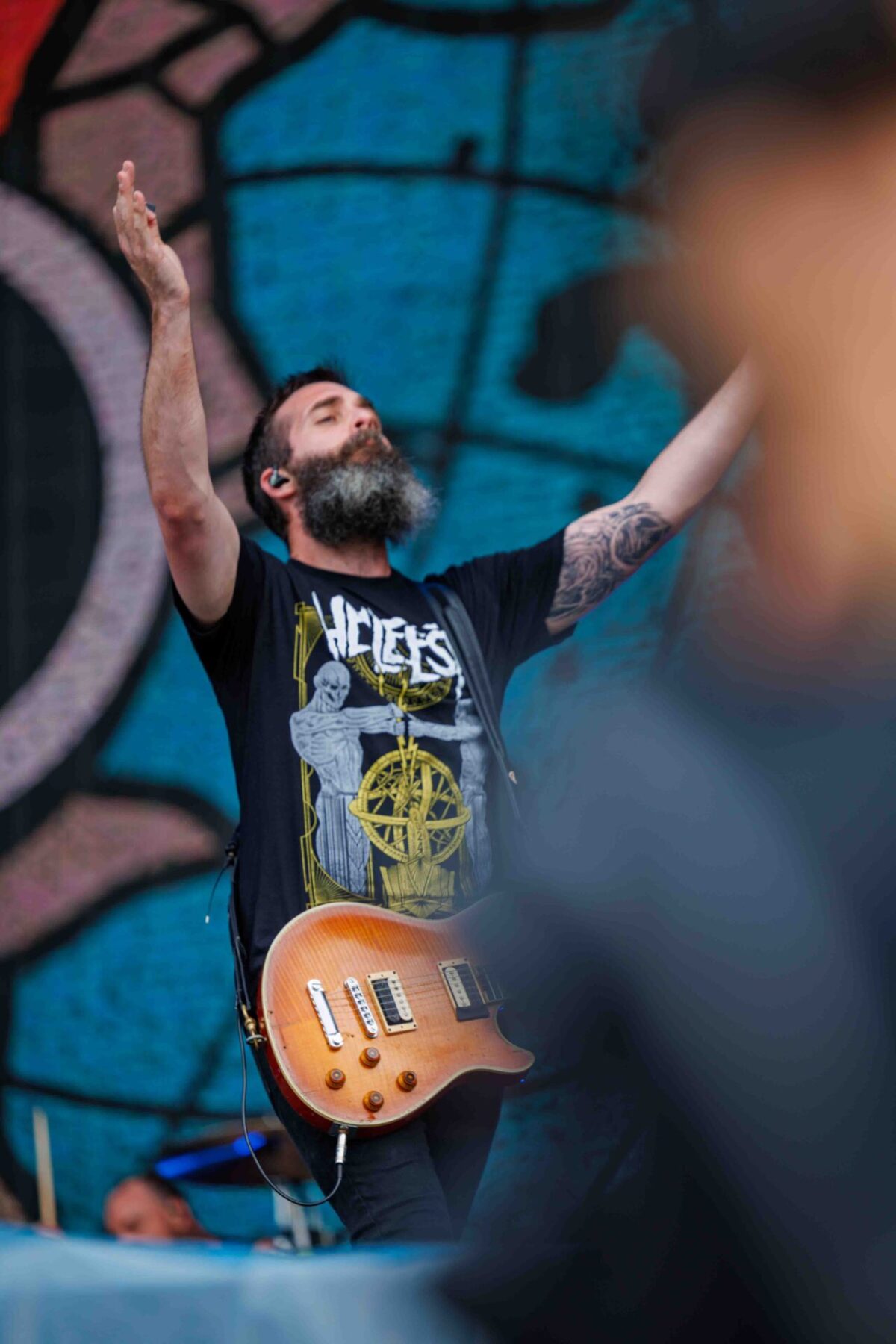 wasted no time unleashing their fury upon the crowd. Tracks like “Sovereign” set the tone for what would be a relentless onslaught of riffs and roars. The Scots commanded the stage, their sound crisp and punishing, proving why they’ve become one of metalcore’s most formidable forces. My first set done and time now for decisions to be made. Planning your day at Hellfest is a mammoth task as the fire blazing performances upon every stage are all worth seeing.