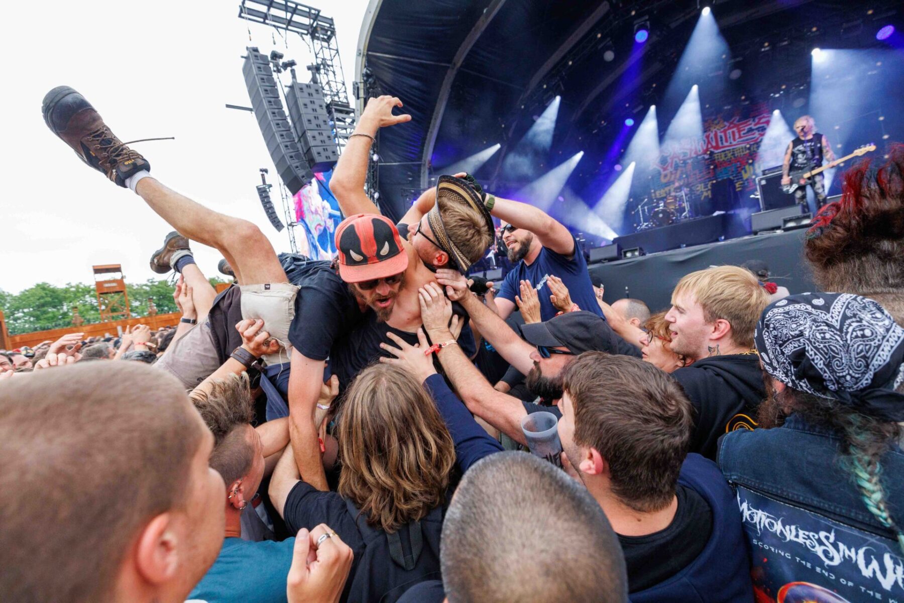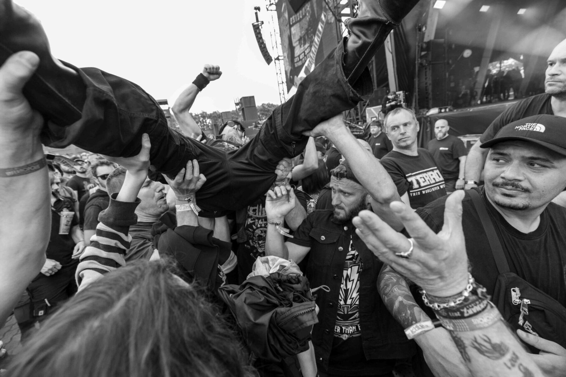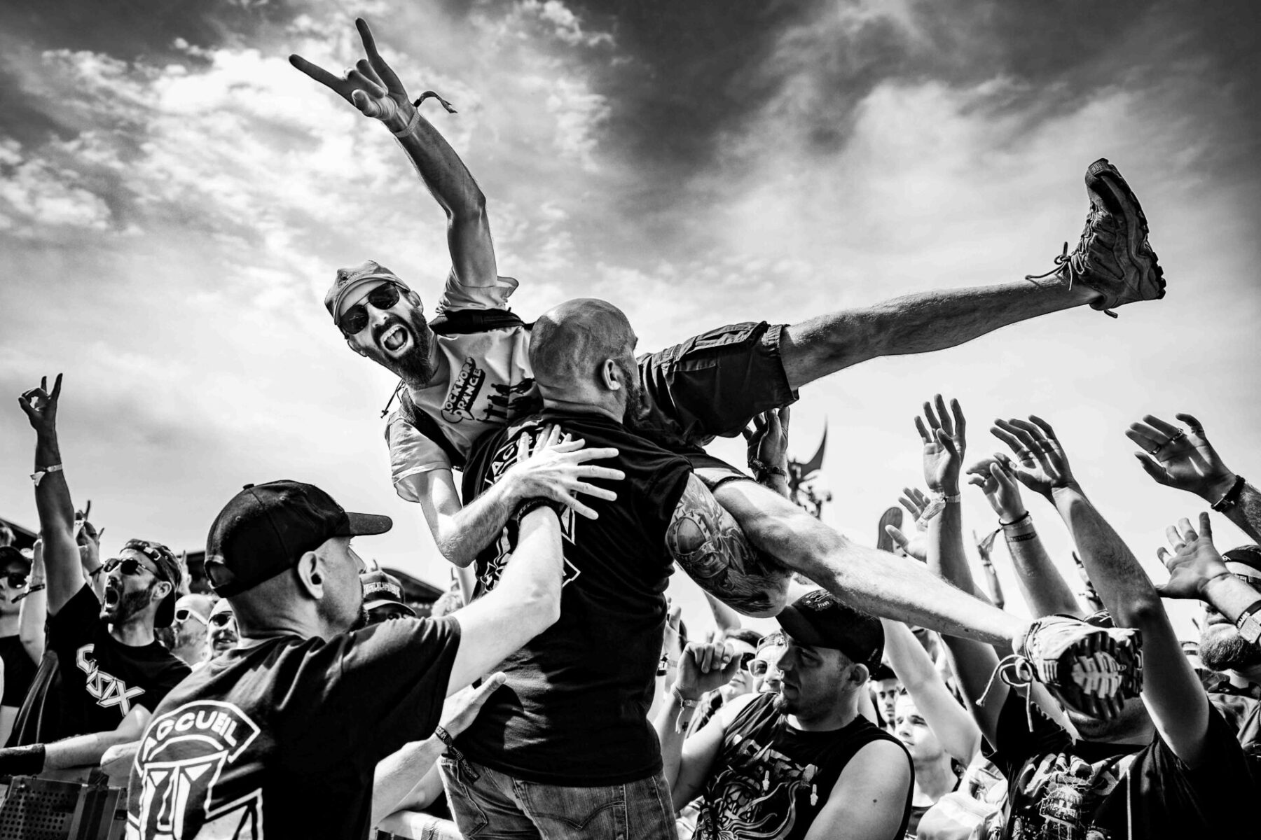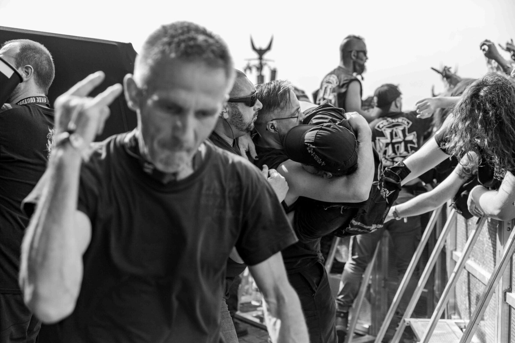 where I find my people and where my passion for ‘getting amongst it’ with camera in hand to chase epic frenzied shots. Adjacent to The Warzone we find The Valley – home of stoner rock, doom and sludge metal. You’ll find things a little slower here. For now though, it’s to The Warzone to catch the last few numbers from the The Casualties bringing their raw punk energy to Hellfest. Their fast-paced setlist and rebellious spirit resonated with punk enthusiasts, making for an exhilarating show, but only as a warmup for what was about to come.