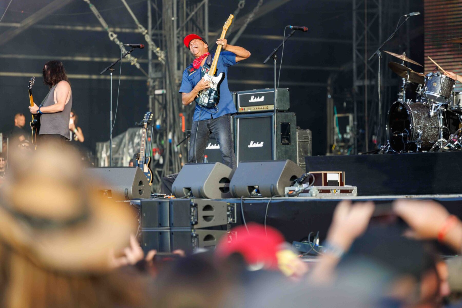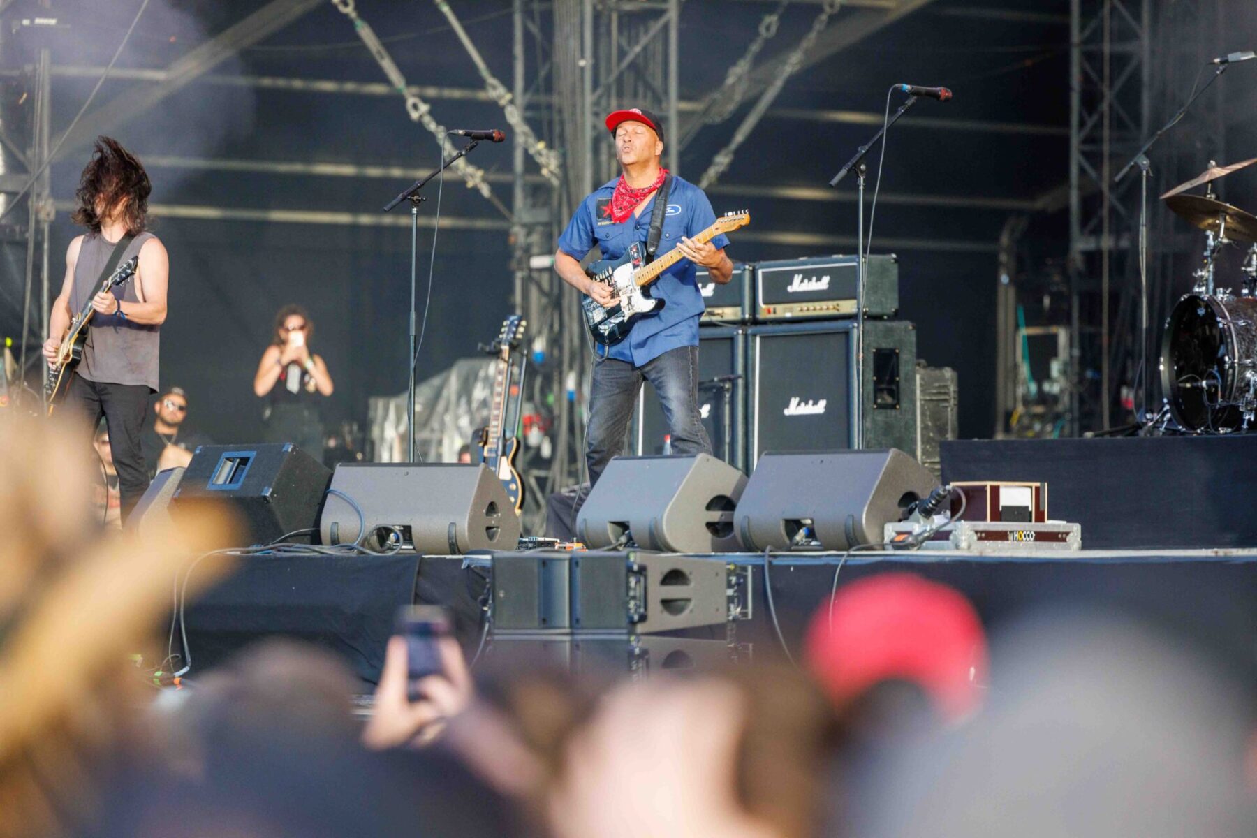 massive open air viewing area of Stage 1 & 2 which can accommodate 60,000 – 70,000 people at peak capacity, I was super eager for the set of Tom Morello. Morello showcased his guitar mastery with unconventional techniques, interweaving covers from Rage Against the Machine and Audioslave, alongside his original compositions. His set was both a musical and political statement, resonating deeply with the audience.