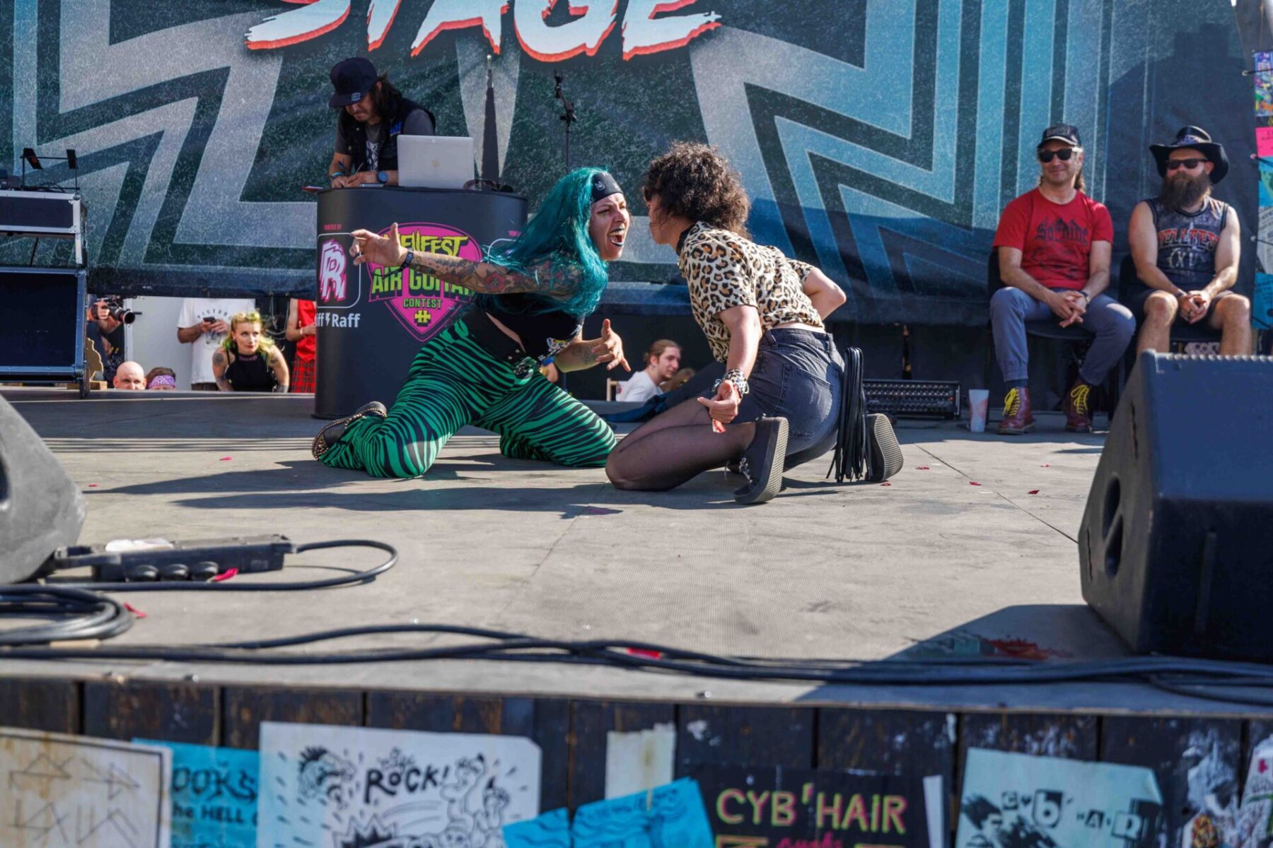 STOP RIGHT THERE….. Before we get to the REAL rockstars, lets get the wannabee rockstars out the way- The Air Guitar competition at the Hell City stage….